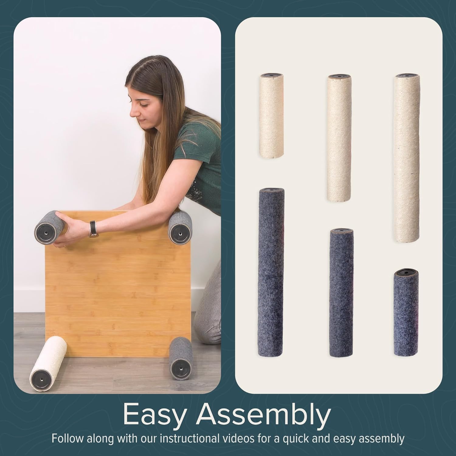 - EASY TO ASSEMBLE AND CLEAN - Quickly assemble the tree with step-by-step diagramed instructions, and scan the included QR code to watch an instructional video for a helping paw. To clean, machine wash the removable felt and cushions, and wipe the veneer with a damp cloth.