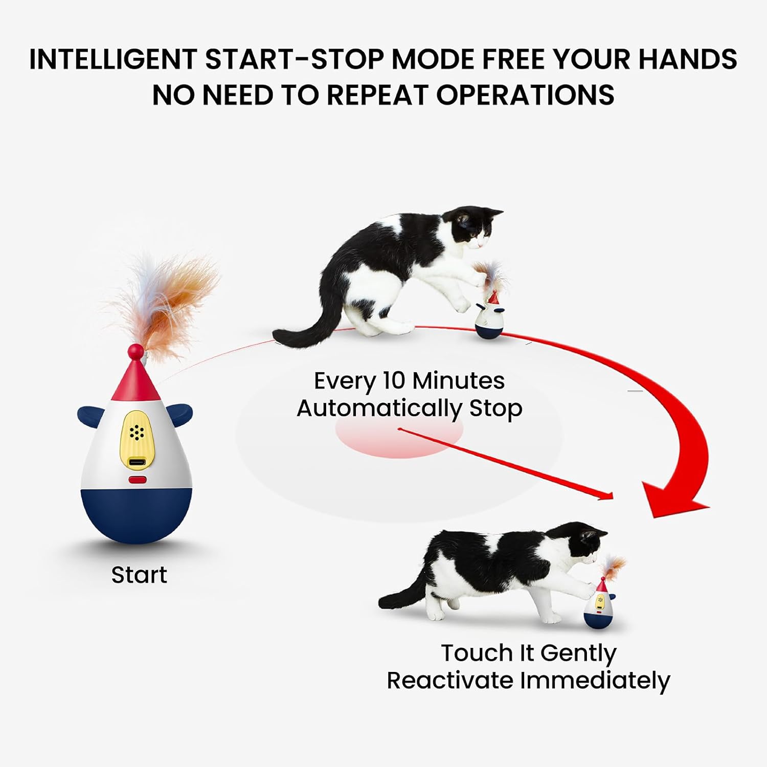 Laser Cat Toys for Indoor Cats, Automatic Interactive Cat Toy, Rechargeable 360° Auto-Spin Self-Balancing Laser Pointer with Catnip Hole & Feather, 3-Speed Random Trajectories for Bored Cats