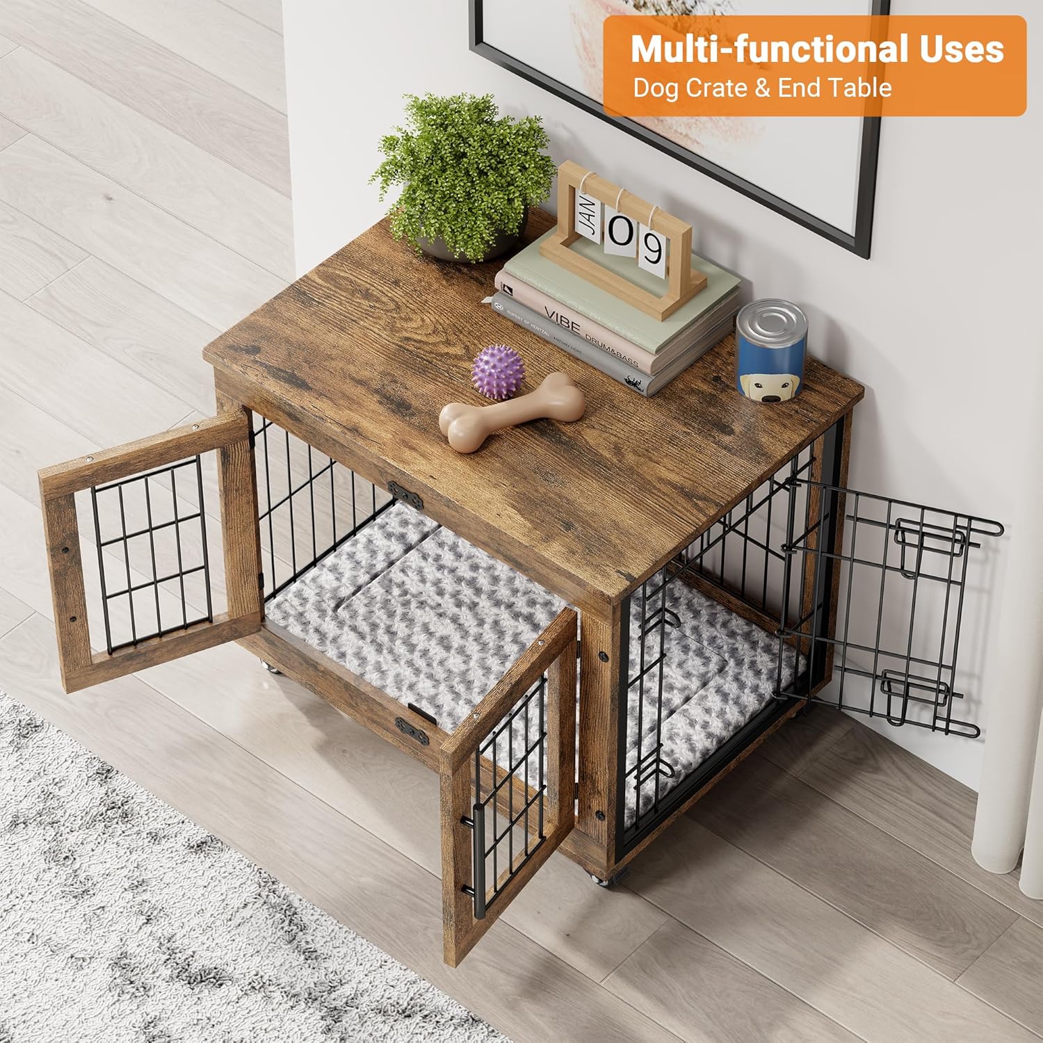 - 【Dog Crate End Table】Not only provide enough space for dogs to play and rest, but the 32inch wide top surface has enough storage for dog food, toys, snacks, etc. Also serves as your storage side table or bedside table to place photo albums or potted plants. A perfect combination of furniture and function while also being a space saver.