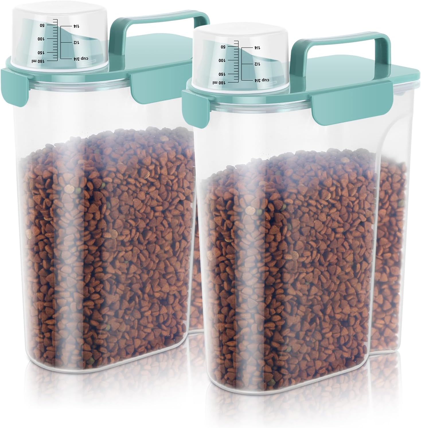 - WHAT YOU GET ? The dog food storage container comes with a 1-pack airtight pet food storage container with a clear measuring cup and an upgraded large spout for easy pouring of pet food at any time. This dog food storage containers can be a gift The perfect gift for any home.