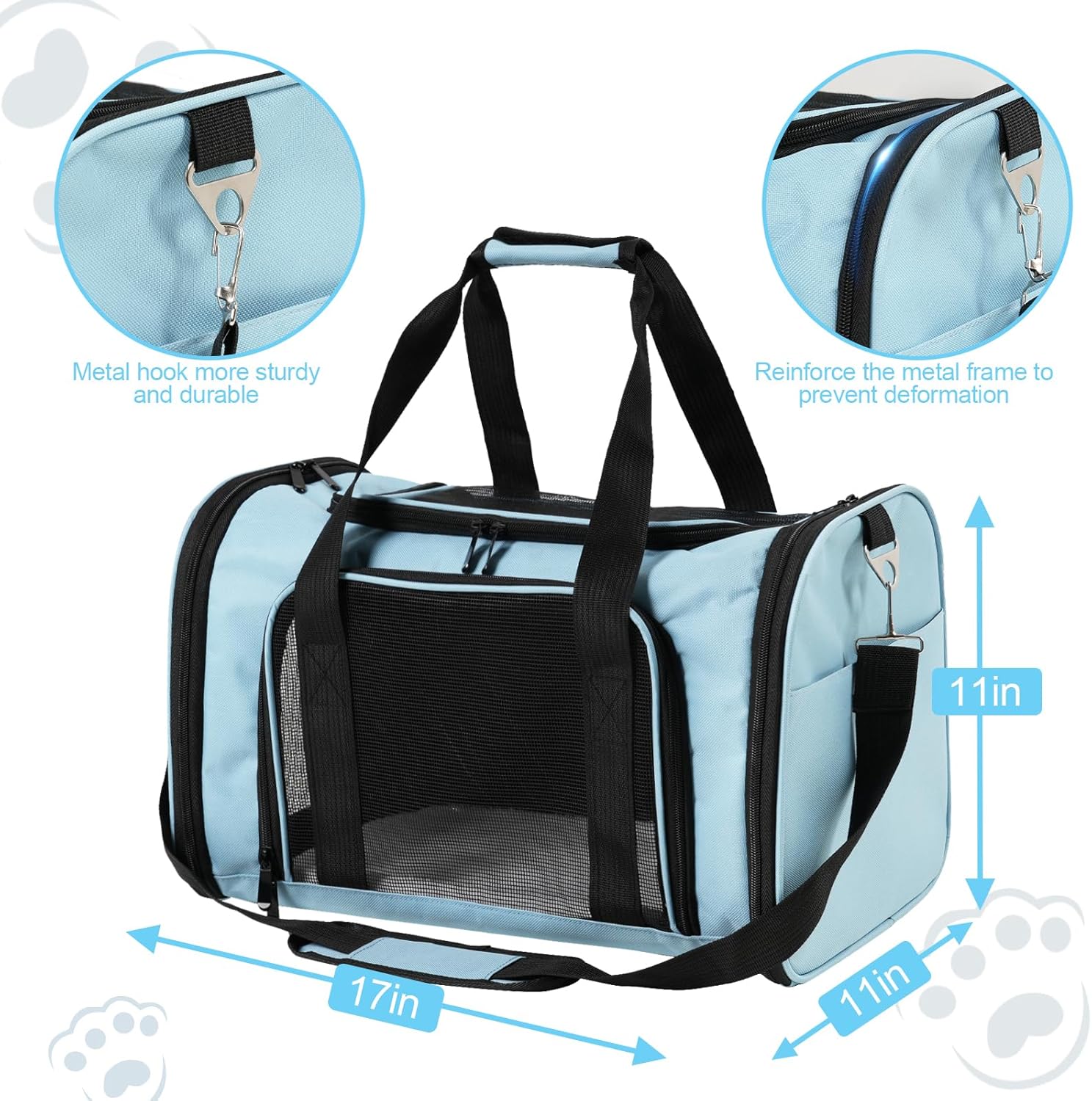 - Airline-Approved Travel Companion:Traveling with your furry friend has never been easier with our Soft-Sided Pet Carrier, designed to meet airline regulations for in-cabin travel. Please Note: While our pet carrier is designed to meet most airline requirements for in-cabin travel, we recommend checking with your airline for specific guidelines and regulations before your trip.