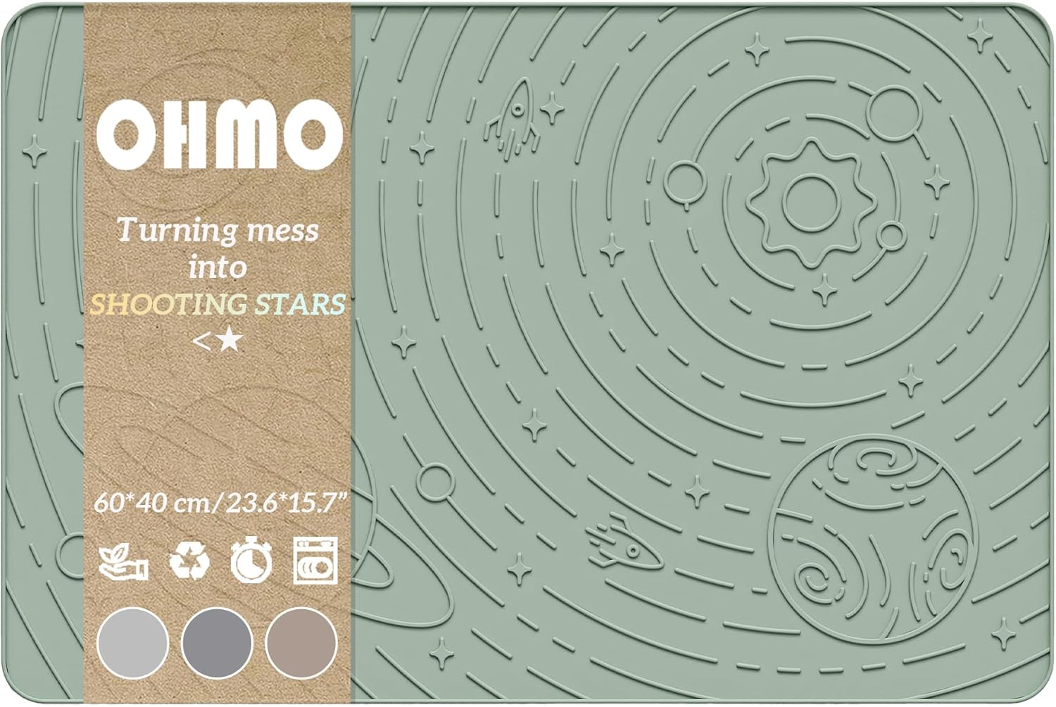 OHMO Dog Food Mat, Silicone Waterproof Cat Food Mat, Non-Skid Spill Proof Pet Feeding Mat for Food and Water, Easy to Clean Dog Placemat(Sage Green, 23.6" x 15.8")