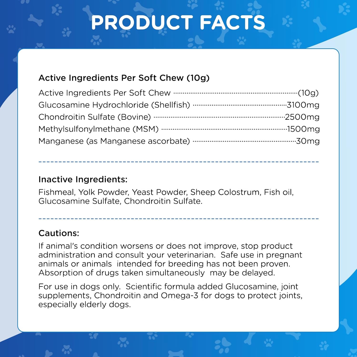 - Immune System Support: Suitable for dogs of all ages and breeds, these supplements not only support joint health but also boost the immune system, helping your dog stay healthy and active