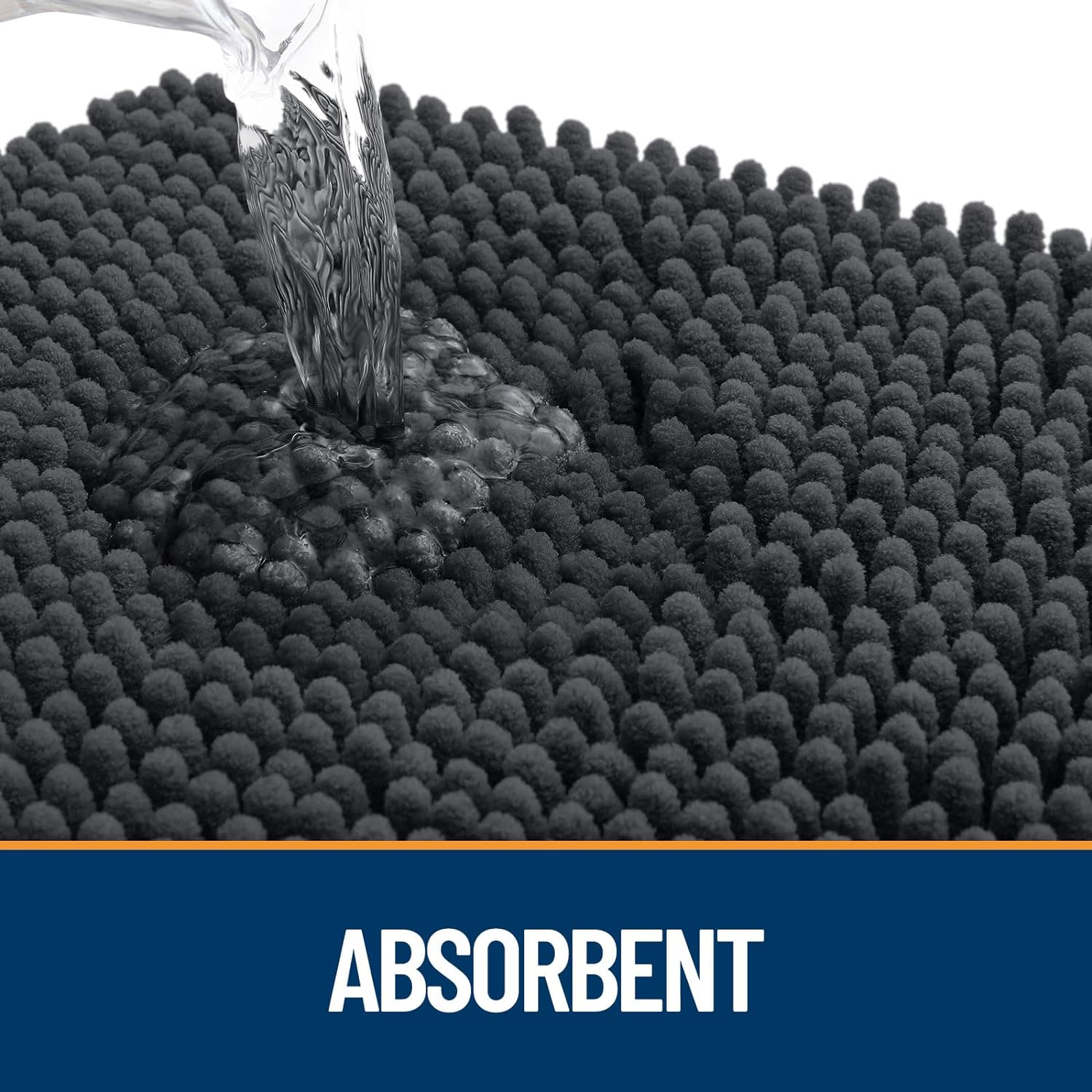 OLANLY Dog Door Mat for Muddy Paws 59x32, Absorbs Moisture and Dirt, Absorbent Non-Slip Washable Doormat, Quick Dry Chenille Mud Mat for Dogs, Entry Indoor Entryway Carpet for Inside Floor, Dark Grey