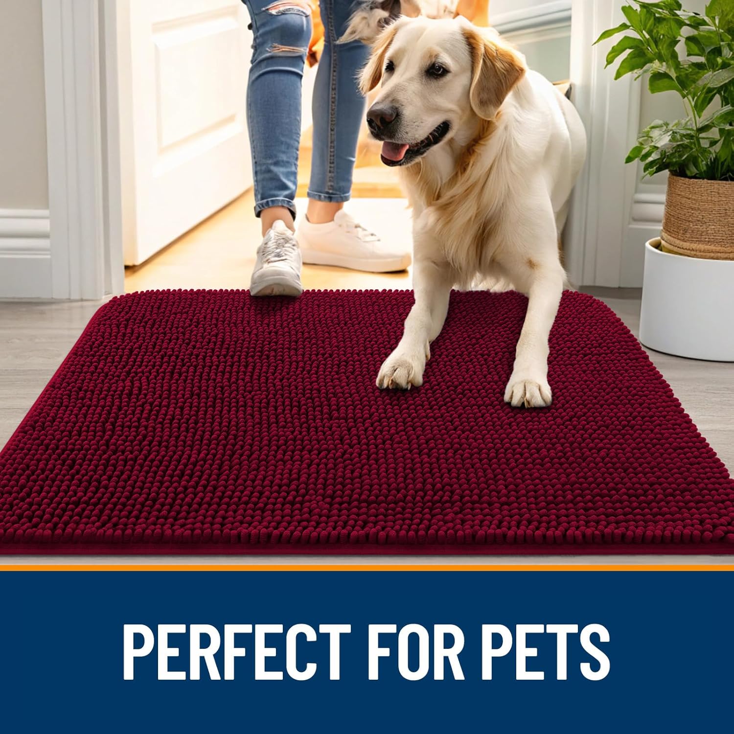 OLANLY Dog Door Mat for Muddy Paws 47x17, Absorbs Moisture and Dirt, Absorbent Non-Slip Washable Doormat, Quick Dry Chenille Mud Mat for Dogs, Entry Indoor Entryway Carpet for Inside Floor, Burgundy
