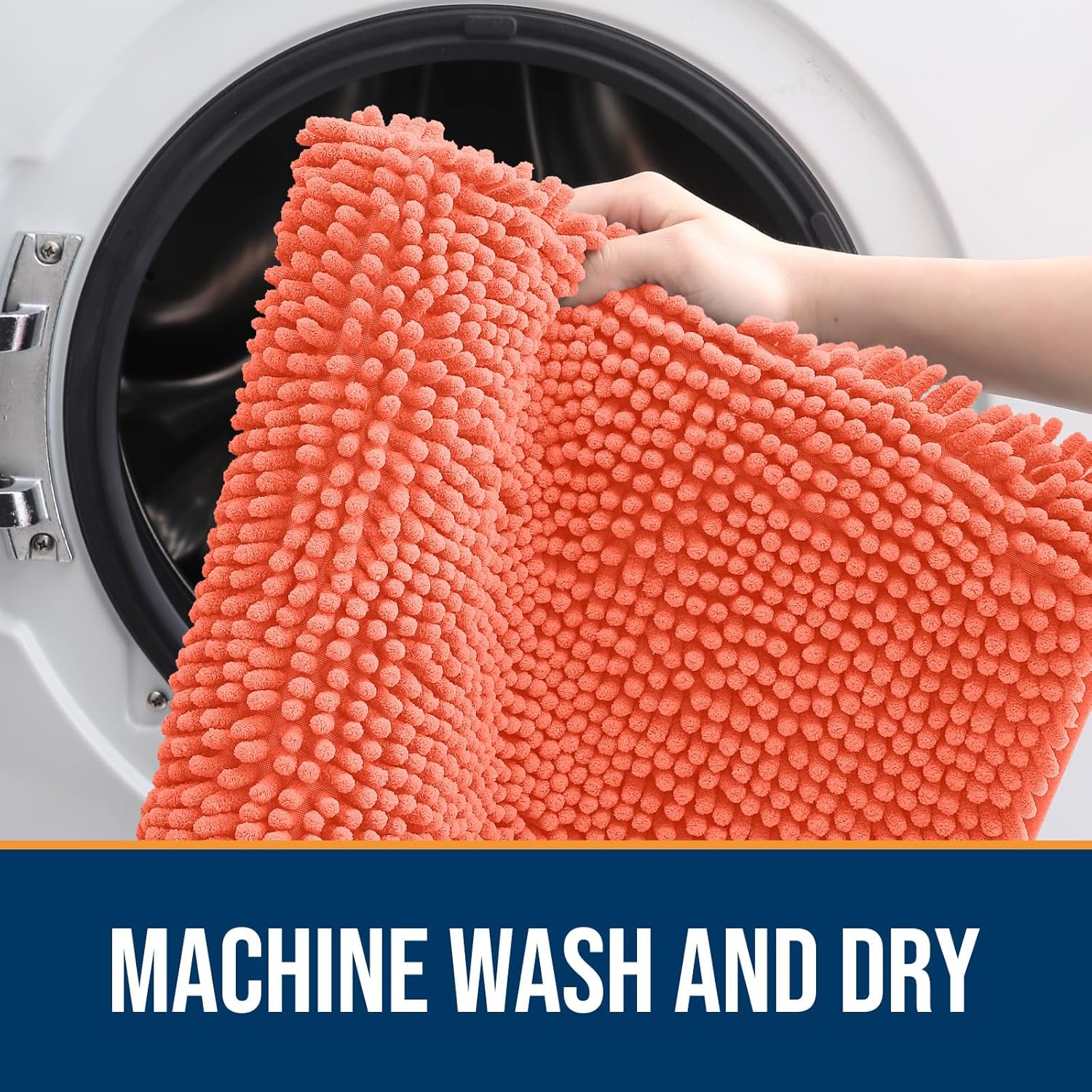 OLANLY Dog Door Mat for Muddy Paws 54x32, Absorbs Moisture and Dirt, Absorbent Non-Slip Washable Doormat, Quick Dry Chenille Mud Mat for Dogs, Entry Indoor Entryway Carpet for Inside Floor, Coral