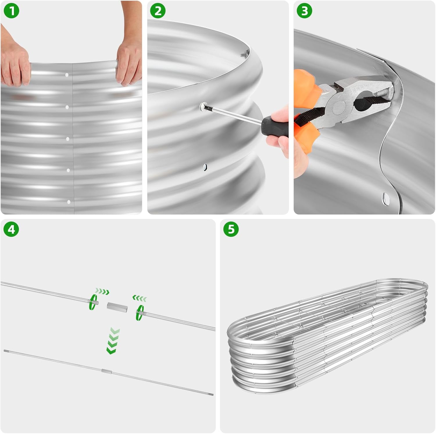 Land Guard 8×2×1.5ft Galvanized Raised Garden Bed Kit, Raised Garden Boxes Outdoor, Oval Metal Raised Garden Beds for Vegetables, Silver