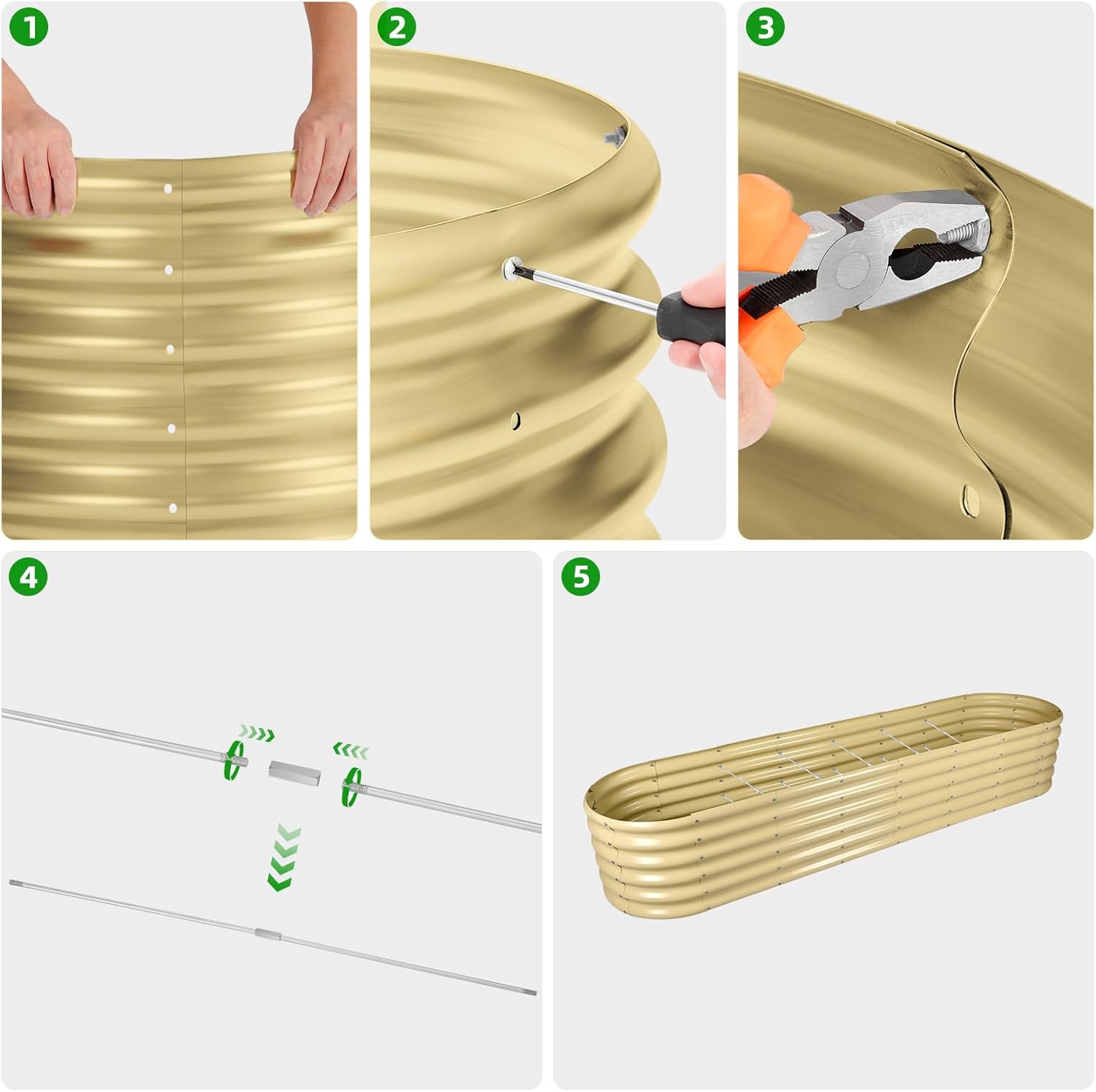 Land Guard 8×2×1.5ft Galvanized Raised Garden Bed Kit, Raised Garden Boxes Outdoor, Oval Metal Raised Garden Beds for Vegetables, Cream Yellow