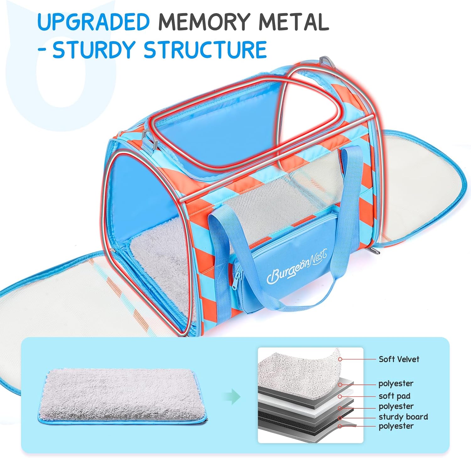 BurgeonNest Cat Carrier, Dog Cat Carriers for Large Medium Cats Under 20 lbs, Soft Sided Pet Carrier, Collapsible Travel Carry Puppy Kitten Cat Carrier with Big Side Bag (Medium, Blue-Orange)