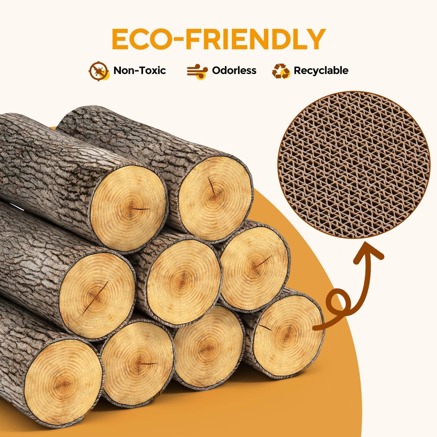 - 【High-quality & Eco Friendly】 The cardboard cat scratcher is made with high-density and abrasion-resistant corrugated paper, which is tough enough to satisfy your cat’s natural scratching instincts while protecting furniture from damage. The 100% Eco-Friendly and non-toxic materials also ensuring safe paws and worry-free play.