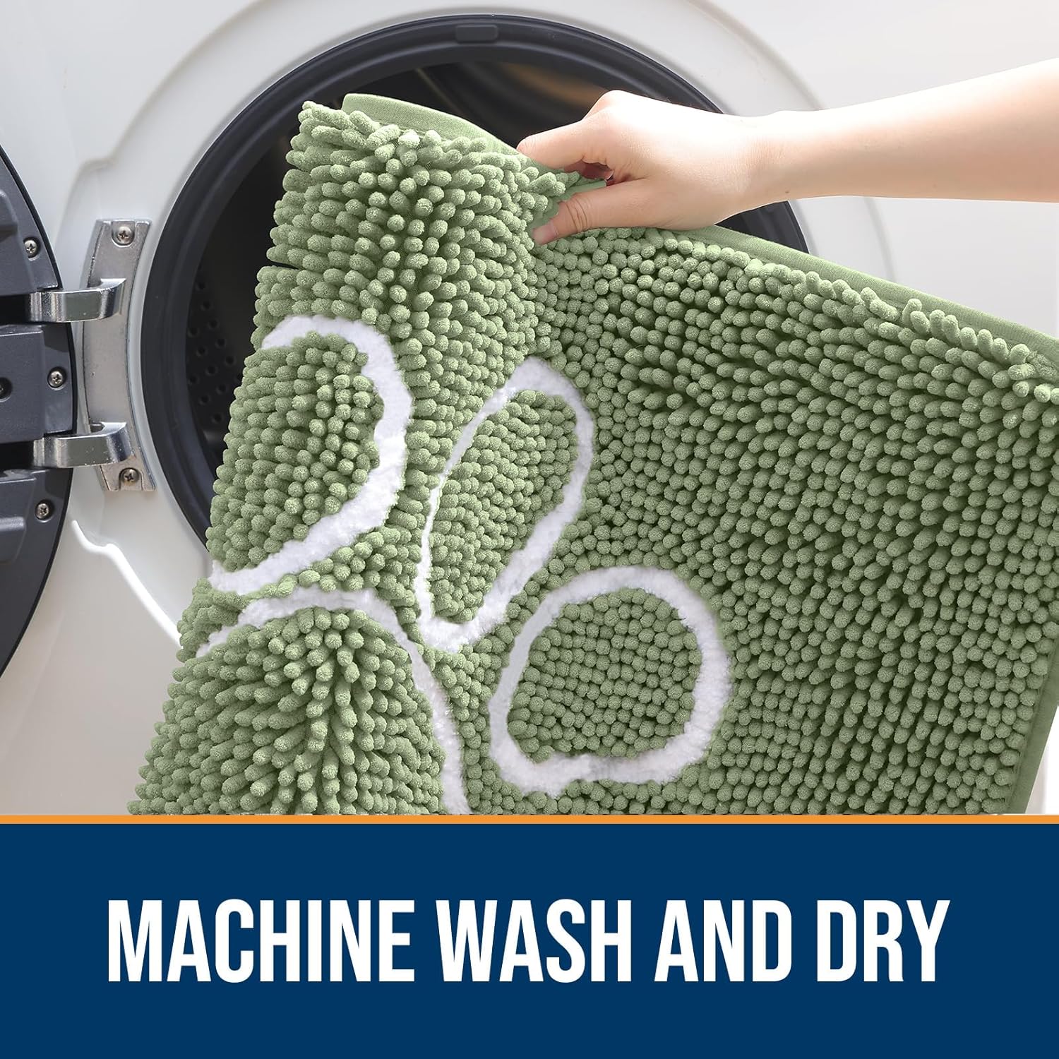 OLANLY Door Mat for Muddy Dog Paws 24x16, Ultra Absorbent Chenille Mud Doormat with Paw Print Design, Non-Slip Washable Doormat for Indoor Entryway, Quick-Dry Pet Bed Mats for Dirty Dogs, Sage Green