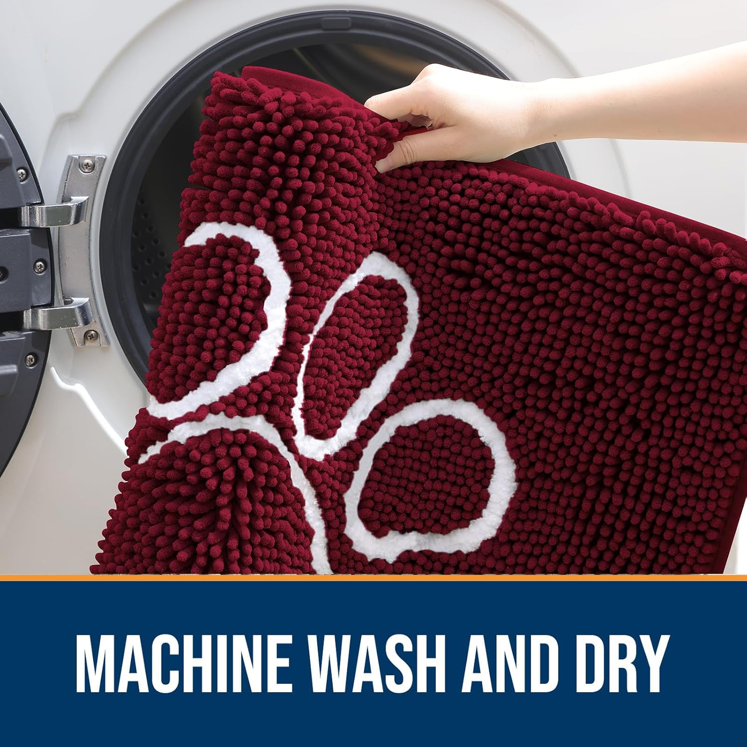 OLANLY Door Mat for Muddy Dog Paws 47x24, Ultra Absorbent Chenille Mud Doormat with Paw Print Design, Non-Slip Washable Doormat for Indoor Entryway, Quick-Dry Pet Bed Mats for Dirty Dogs, Burgundy