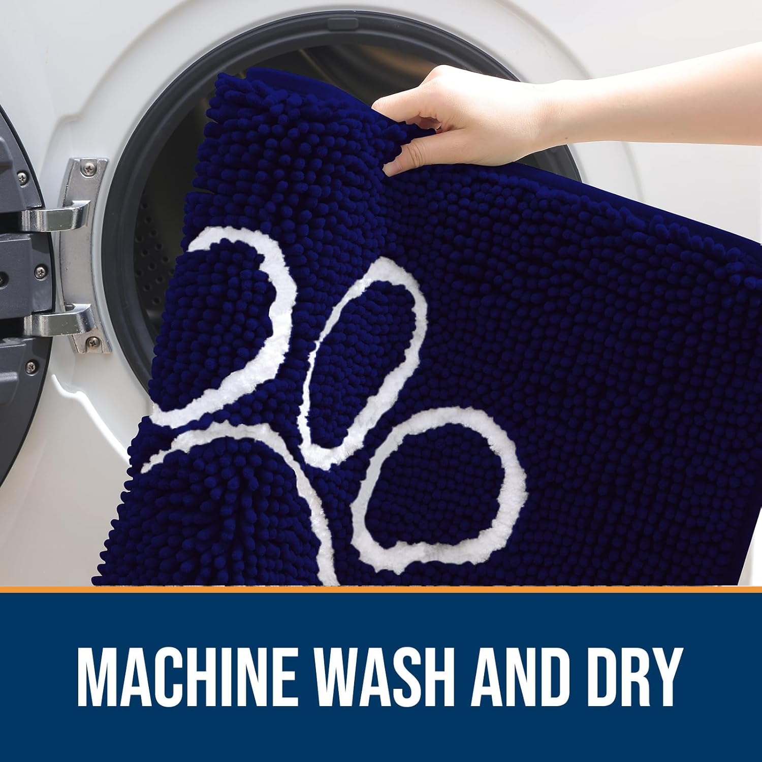 OLANLY Door Mat for Muddy Dog Paws 40x32, Ultra Absorbent Chenille Mud Doormat with Paw Print Design, Non-Slip Washable Doormat for Indoor Entryway, Quick-Dry Pet Bed Mats for Dirty Dogs, Navy Blue