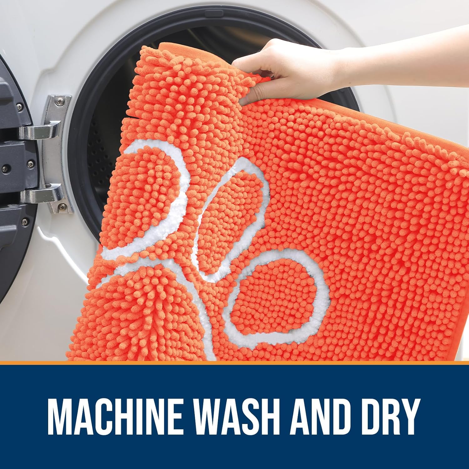 OLANLY Door Mat for Muddy Dog Paws 30x20, Ultra Absorbent Chenille Mud Doormat with Paw Print Design, Non-Slip Washable Doormat for Indoor Entryway, Quick-Dry Pet Bed Mats for Dirty Dogs, Coral