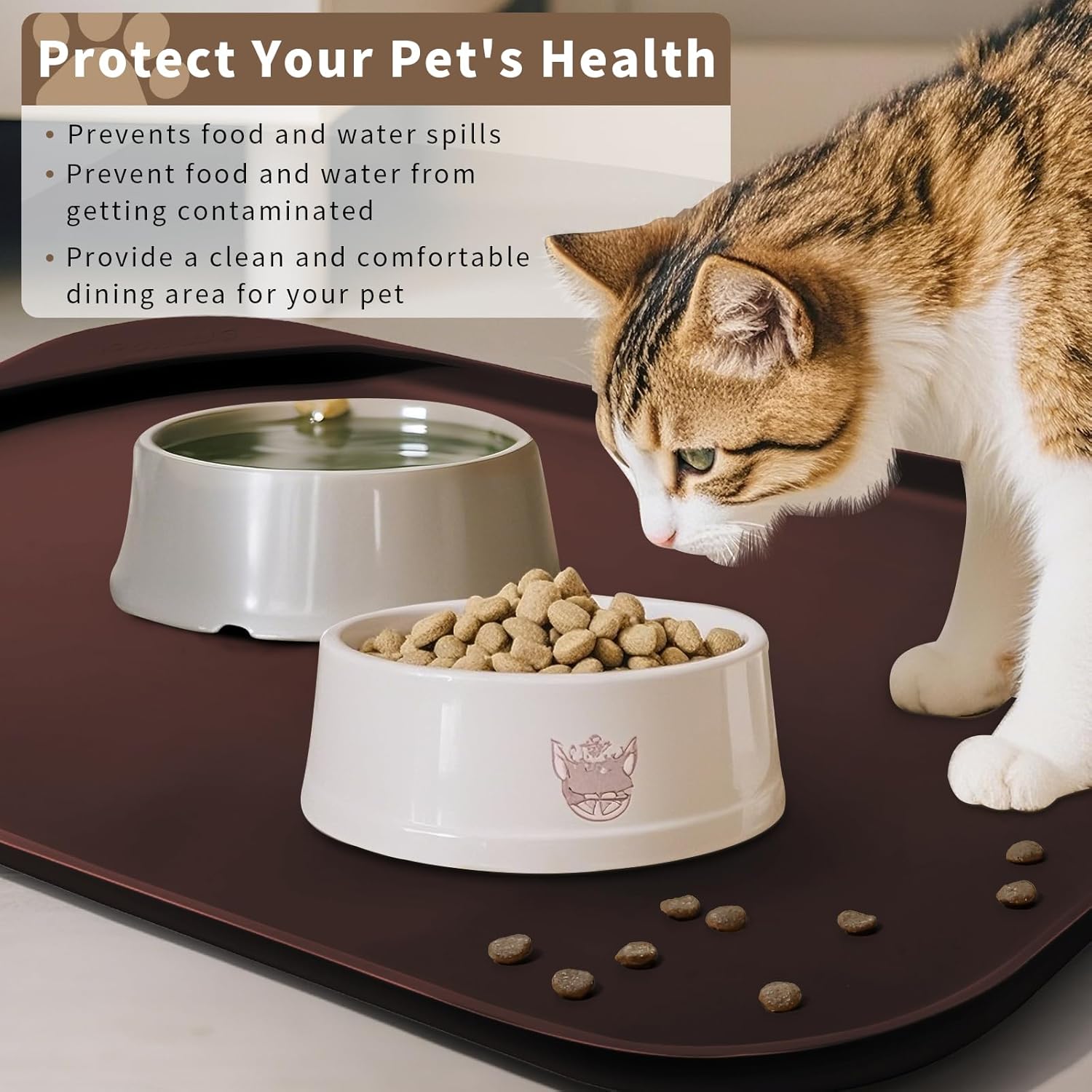 - Slip-resistant to Keep Bowls in Place - Our 100% water proof dog water matt for sloppy drinkers has excellent anti-slip properties to prevent silicone pad for dog bowls from sliding around while your dog is eating, keeping food and water off the floor.