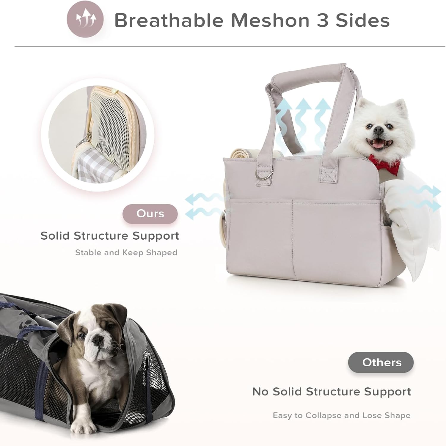 Dog Purse Carrier for Small Dogs, Soft Soft Sided Folding Dog Carriers for Small Dogs Medium Cats Puppies up to 15 Lbs, Washable Breathable Puppy Carrier for Outdoor Travel (Large Gray)