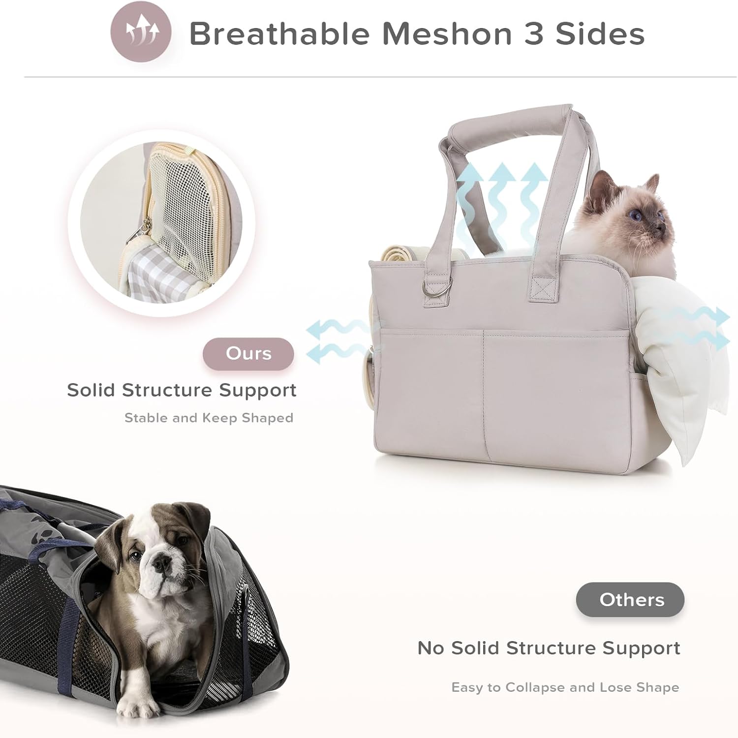 - Breathable & Secure: The mesh design on the top and sides ensures excellent ventilation, allowing your pet to observe their surroundings and feel less anxious, resulting in a more comfortable travel experience. It provides reliable protection for your pet, no matter when or where you use it.