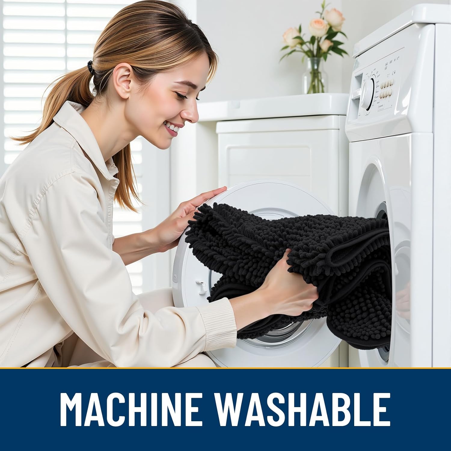 - [Absorbent and Dirt Trapper] High-density chenille dog mat, super absorbent and dirt-catching, whether wet after shower, muddy or moisture bring back by dogs, it can absorb well, so that you and your favorite pet can say goodbye to the wet and mud. It's an excellent choice for use as an entryway door mat, a welcome door mat or a dirt-trapping door mat.