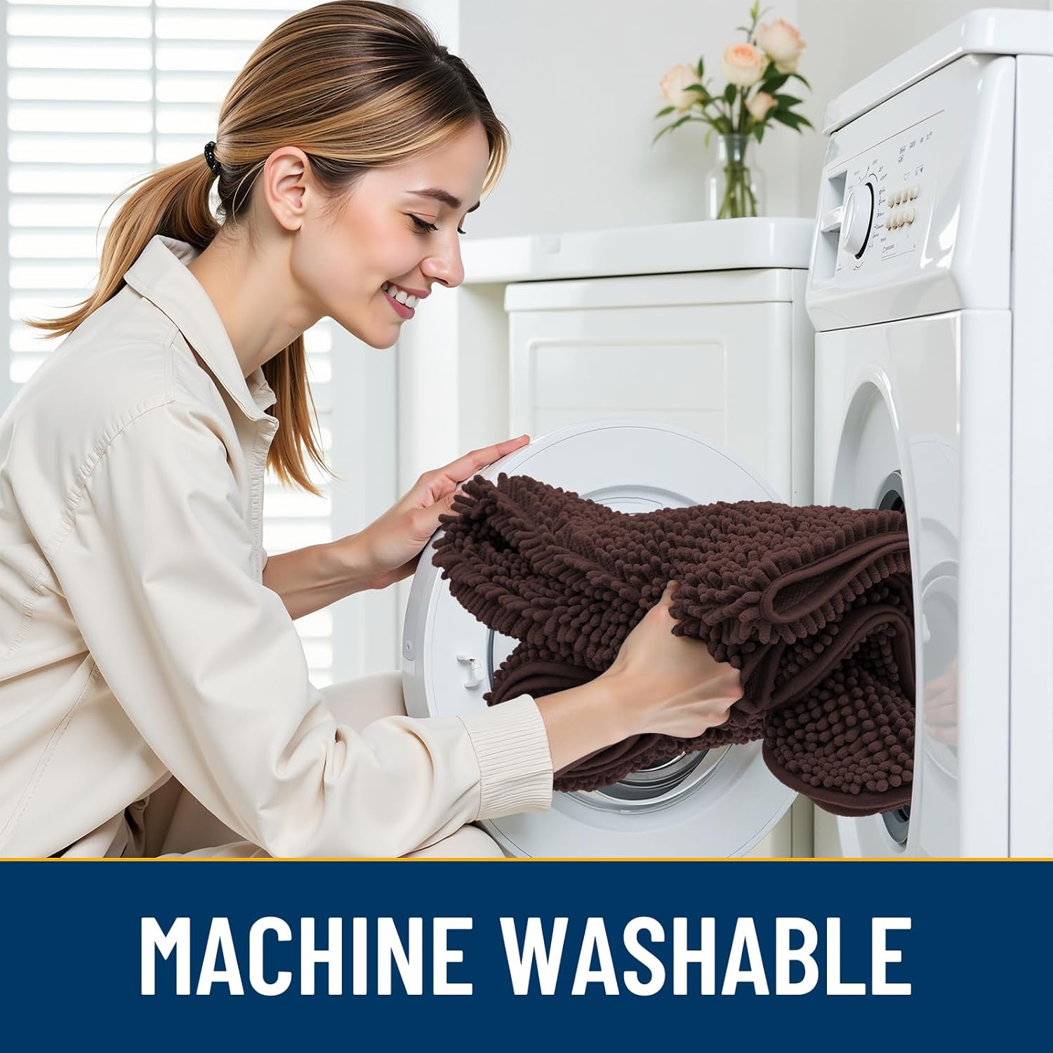 Smiry Dog Door Mat for Muddy Paws 30x20, Absorbs Moisture and Dirt Doormat, Non-Slip Washable Quick Dry Chenille Front Door Mat Indoor Entrance, Entryway Carpet for Inside Floor, Brown