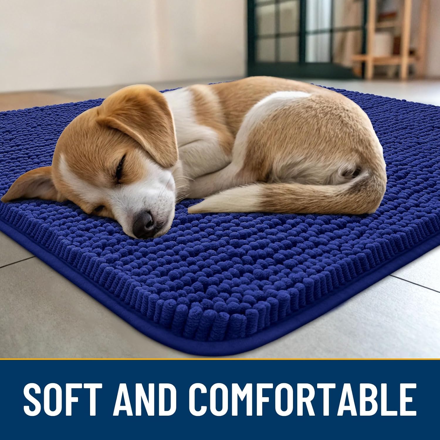 Smiry Dog Door Mat for Muddy Paws 40x32, Absorbs Moisture and Dirt Doormat, Non-Slip Washable Quick Dry Chenille Front Door Mat Indoor Entrance, Entryway Carpet for Inside Floor, Navy Blue