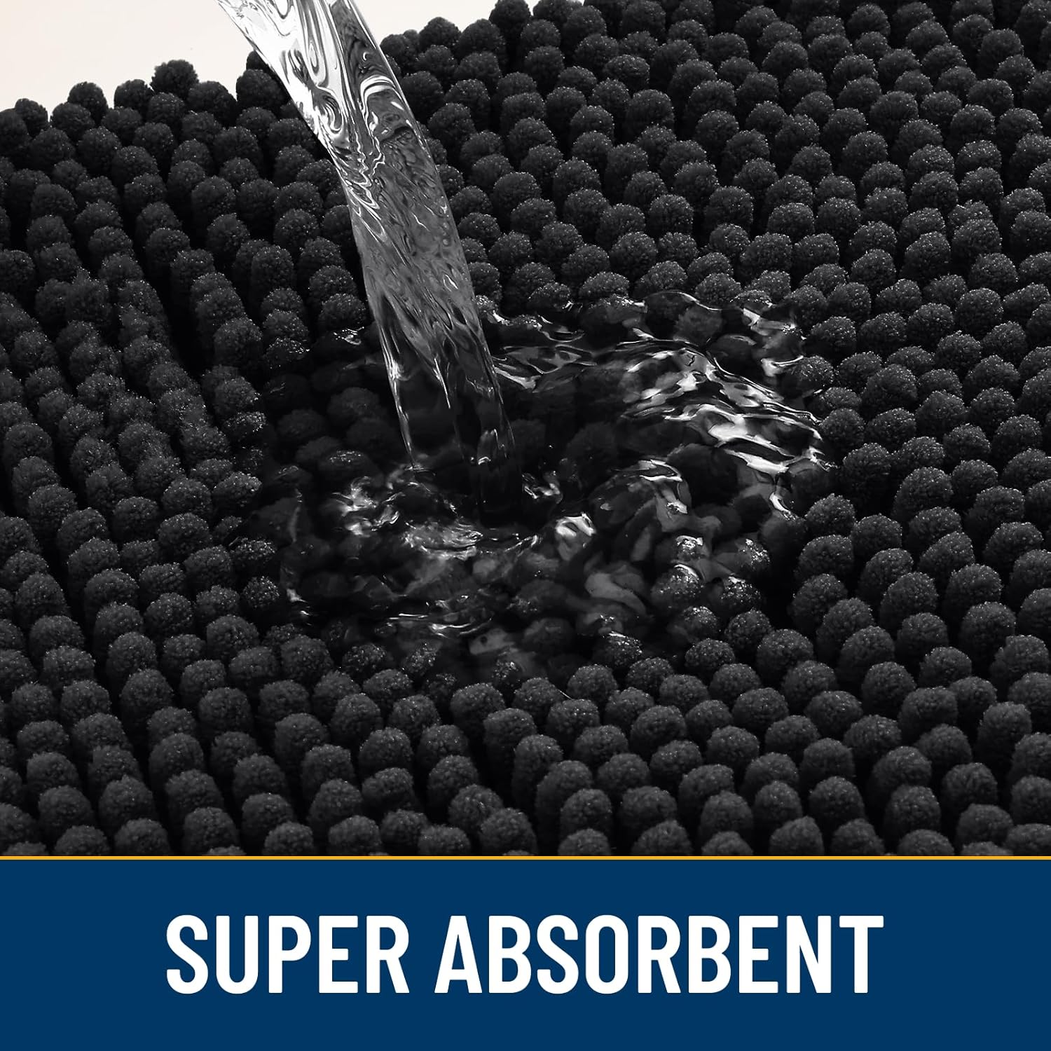 Smiry Dog Door Mat for Muddy Paws 24x16, Absorbs Moisture and Dirt Doormat, Non-Slip Washable Quick Dry Chenille Front Door Mat Indoor Entrance, Entryway Carpet for Inside Floor, Black