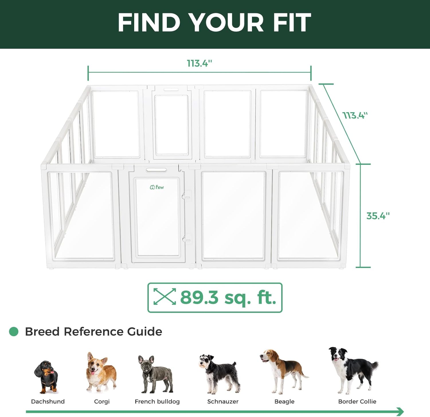 FXW AuraSpace Acrylic Indoor Unleashed Dog Playpen for Medium Dogs, 35 Inch, 16 Panels, White