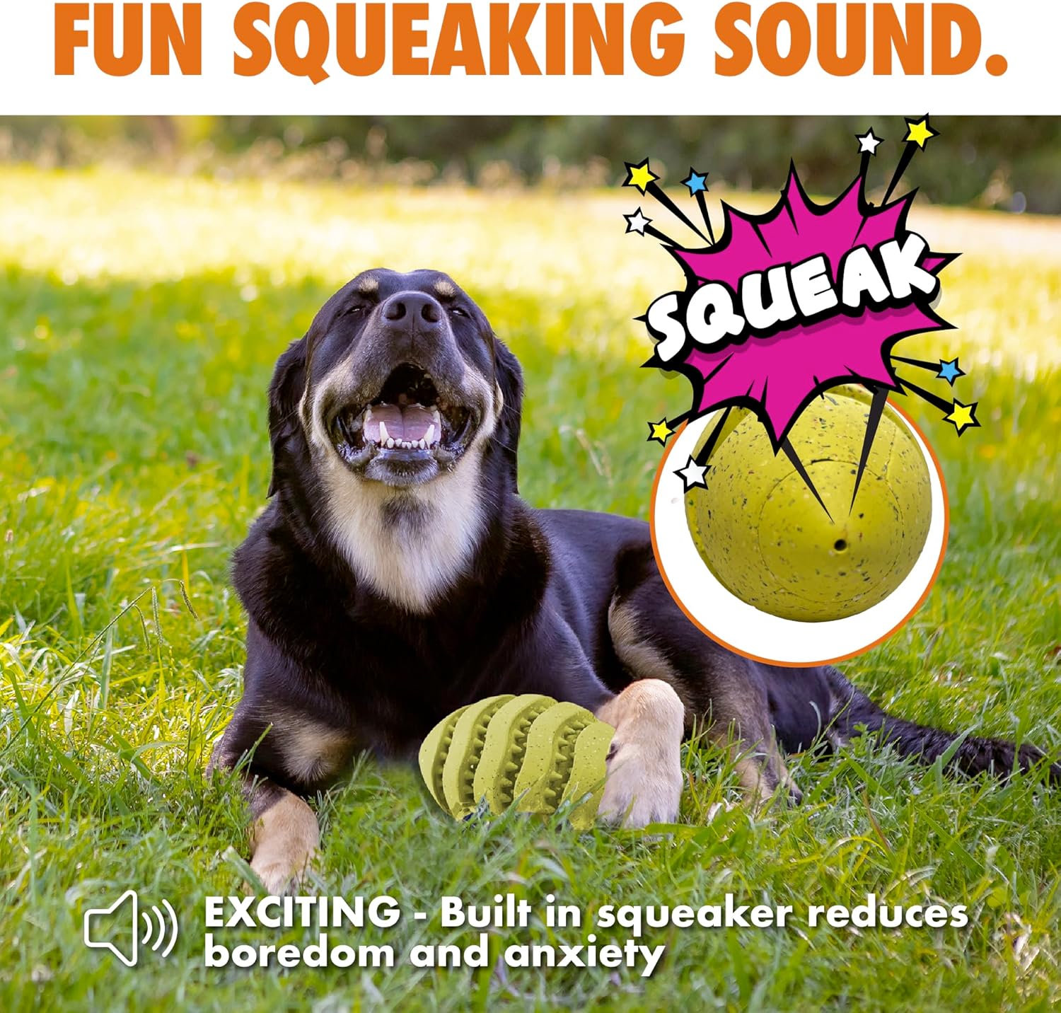 - ENGAGES NATURAL PLAY INSTINCTS: This dog treat dispenser toy encourages active play, problem-solving, and extended engagement. Whether used for fetch, solo play, or treat-releasing fun, it provides an exciting way to keep your dog entertained. Ideal for pet parents looking for dog stimulation toys that help support their pupās natural instincts for chasing, chewing, and foraging.