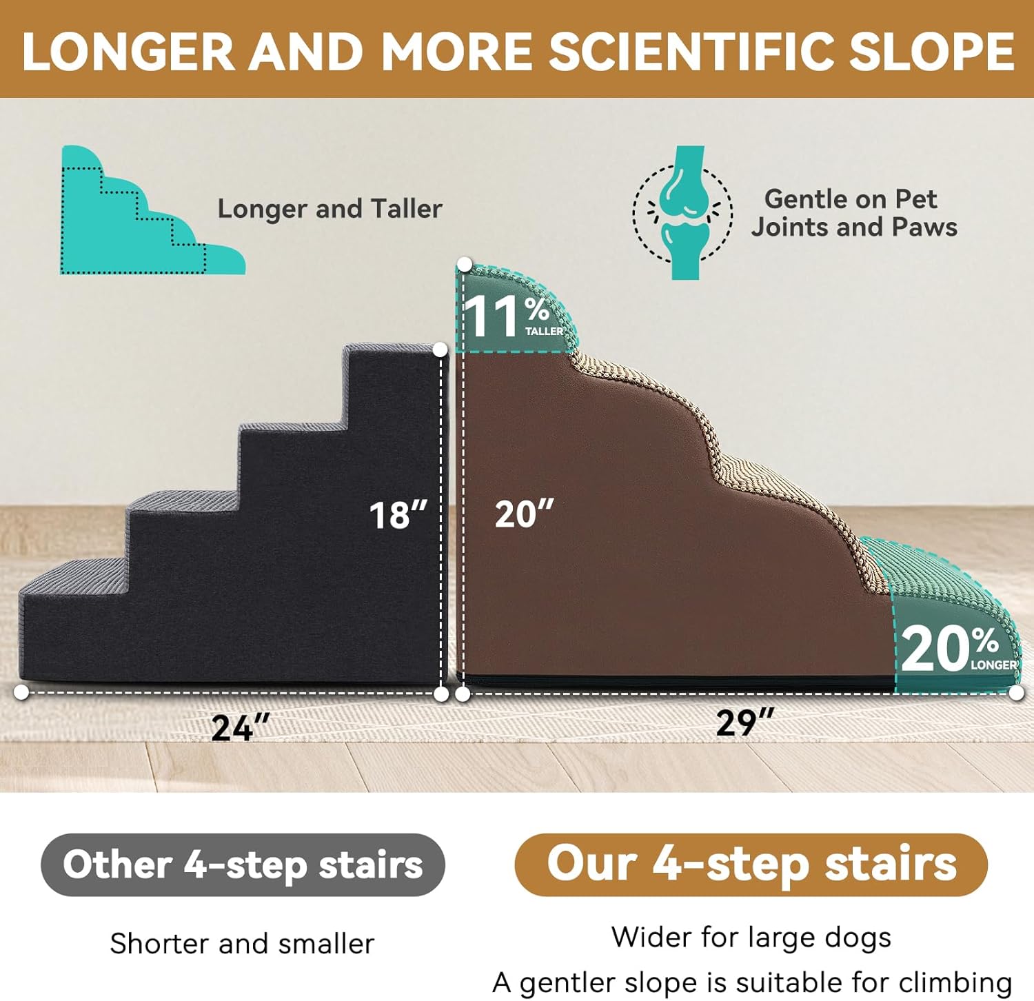 - Multi Sizes Fit Every Need: Zerbuger foam dog stair is not suitable for large dogs, please use it for pets under 50lbs! 3-steps are suitable for chairs and couches up to 20inch, 4-steps are suitable for high sofas, beds and window up to 25inch. Please confirm whether the size is suitable for your love pet first.