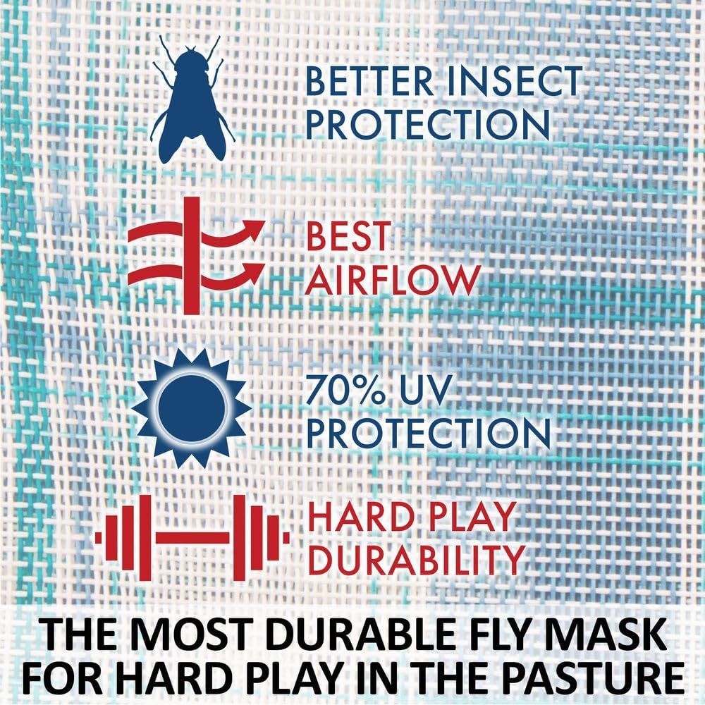 - Color Blue Plaid | Size Full Size - DURABLE 1000D MESH - Crafted from heavy-duty vinyl-coated Dura-Mesh, this fly mask withstands daily turnout and hard play while shielding your horse from biting insects like deer flies, greenheads, and horse flies.