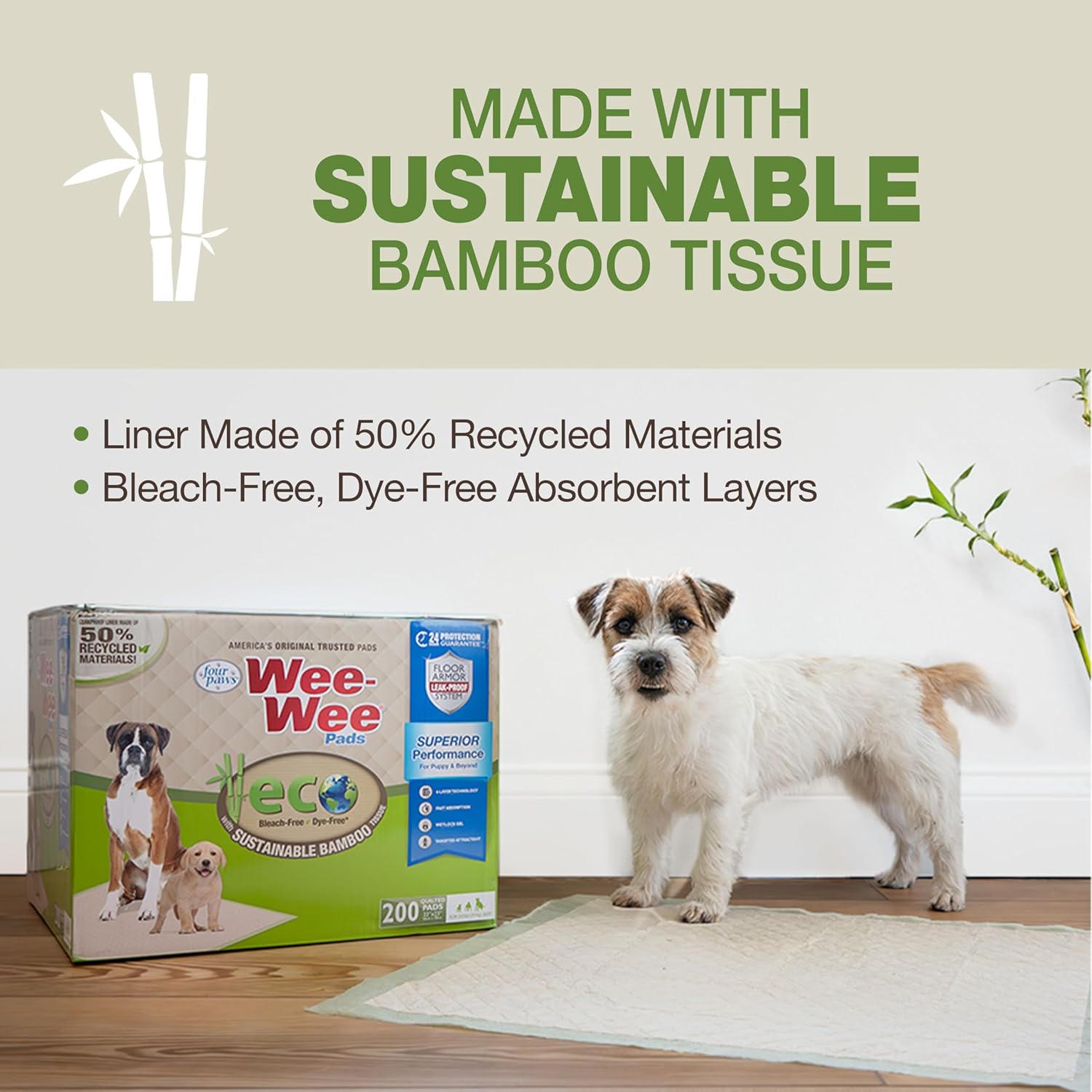 Four Paws Wee-Wee Superior Performance Bamboo Pee Pads for Dogs, Earth Friendly Dog & Puppy Potty Training Pads, Crate Liners, Housebreaking Supplies, 22" x 23" (14 Count)