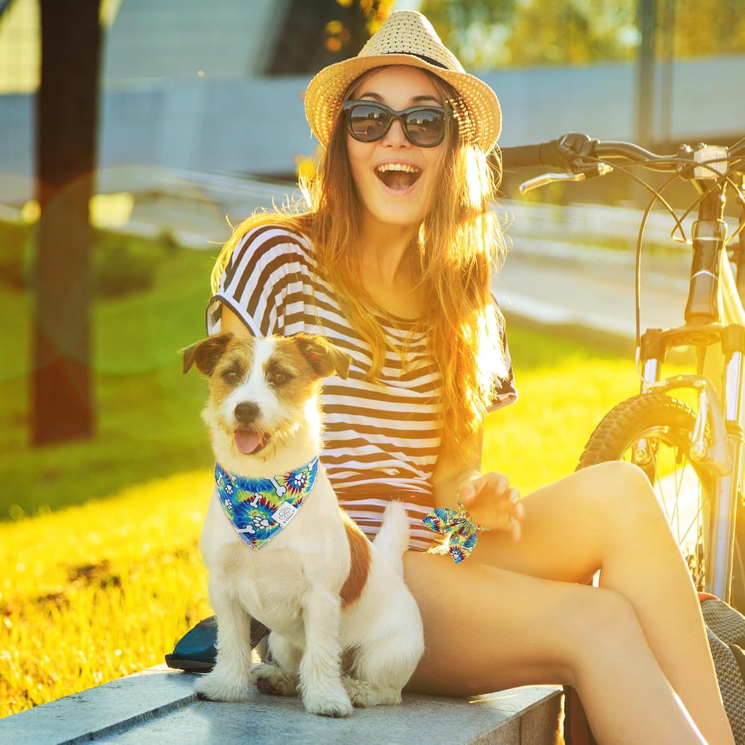 - Matching Bandana and Scrunchie Set- It’s full of love when your pets is wearing the colorful bandanas and you are wearing the bow scrunchies. When traveling, sleeping, taking photos or daily warking, adorable dog spring bandana and scrunchie is a pretty accessories. The the hair tie can be worn as a wrist accessory and hold your hair. Beautiful dog drool bibs and scrunchie with rainbow and dog paw pattern, it’s nice photo props.