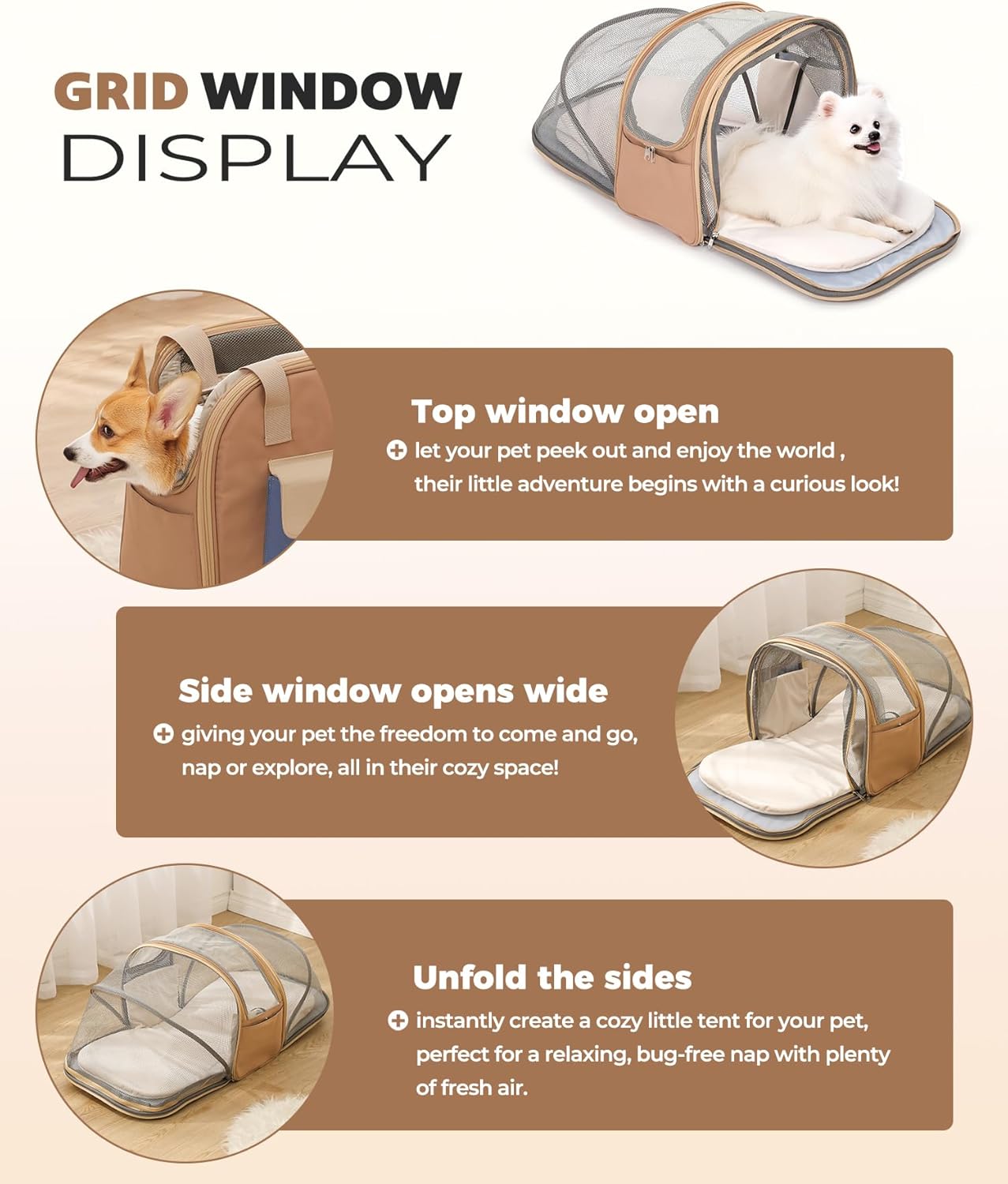 - Suitable for Small to Medium-Sized Pets: Designed for cats (e.g., Siamese, Ragdoll) and small dogs (e.g., Chihuahuas, Shih Tzus) under 25 lbs. The 32" expanded space ensures comfort for pets up to 12" tall, perfect for long trips or vet visits.