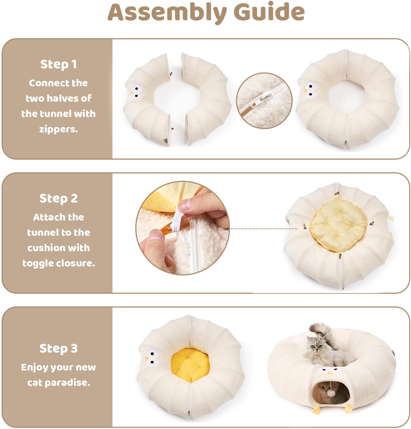 - Easy to Clean: With your convenience in mind, EHEYCIGA cat tunnel bed is effortless to assemble and quick to store. The removable cushion is machine washable.