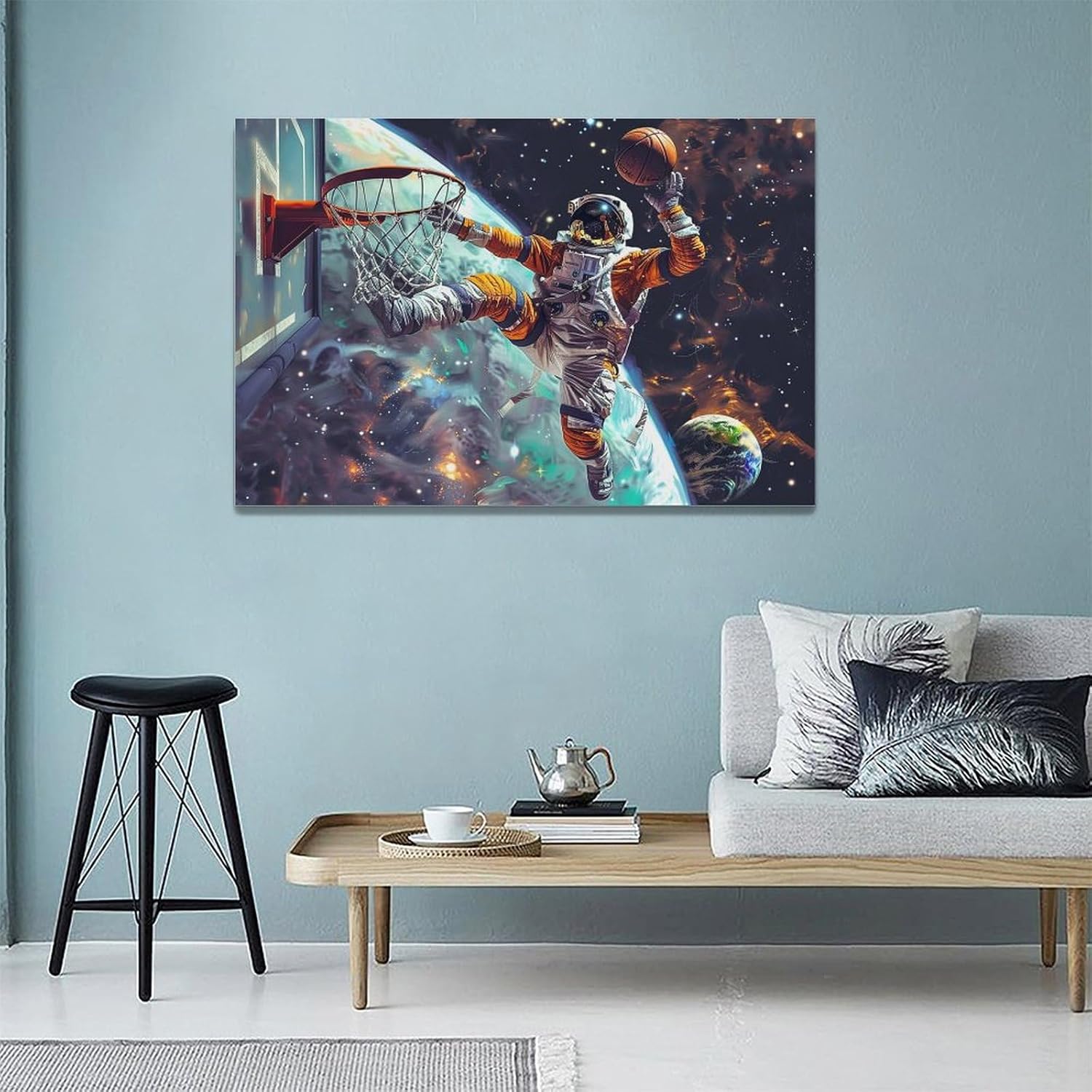 Quorin Astronaut Wall Art Funny Spaceman Basketball Pictures Space Galaxy Planet Wall Decor Canvas Print Painting Artwork for Bathroom Living Room Bedroom 16"x24"