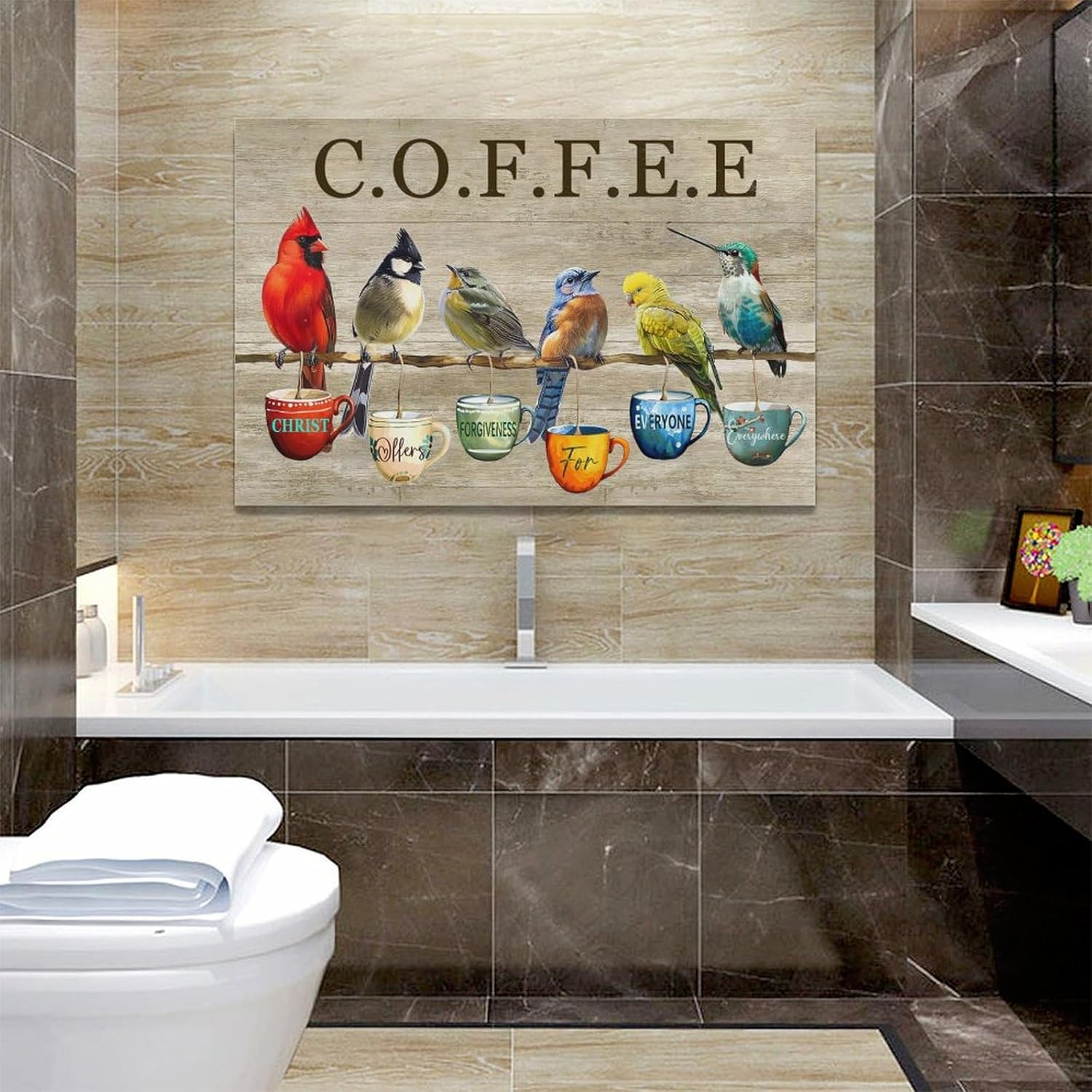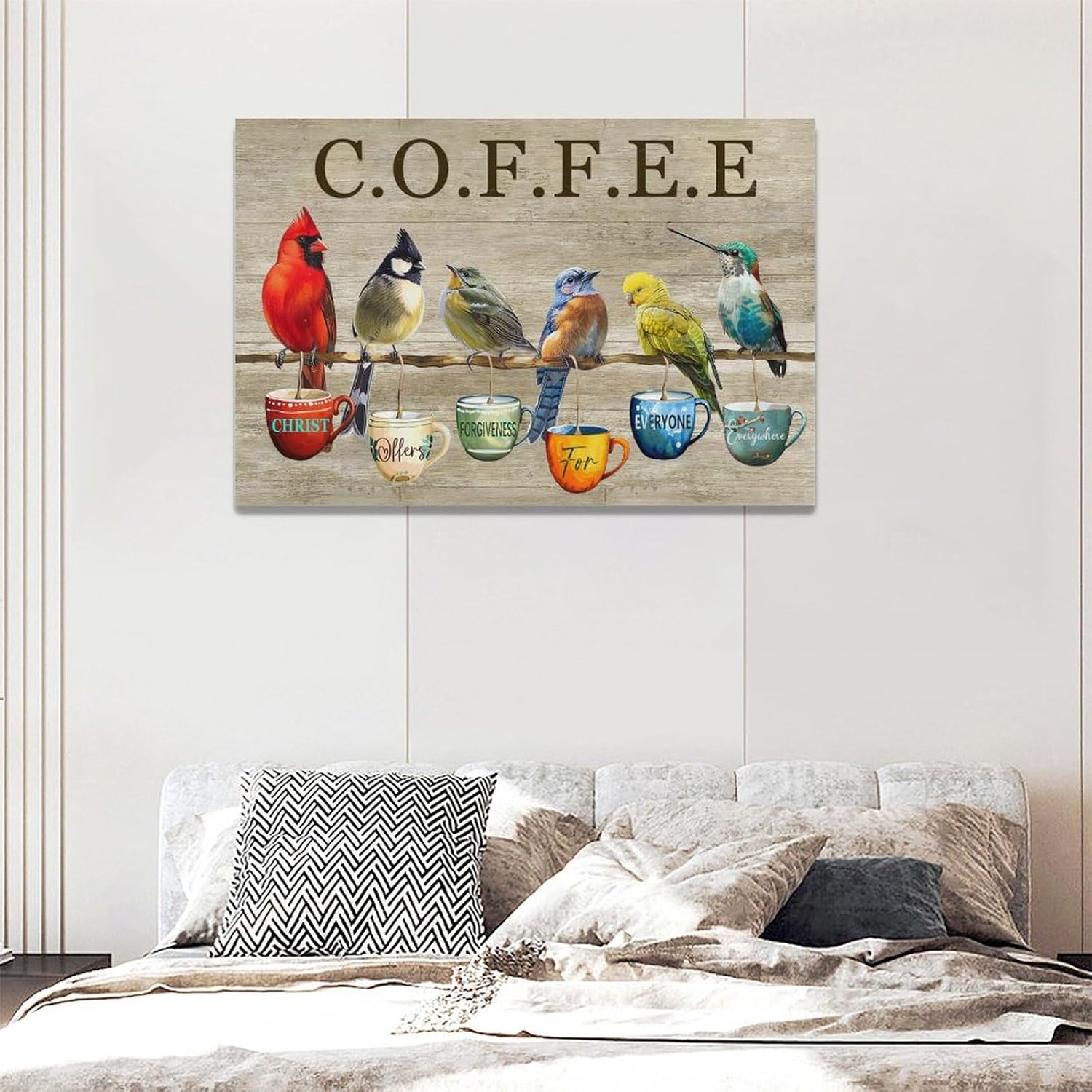 Rustic Bird Coffee Wall Art Kitchen Christ Coffee Pictures Wall Decor Farmhouse Cardinal Hummingbird Canvas Print Painting Artwork for Coffee Bar Living Room Bedroom 16"x24"