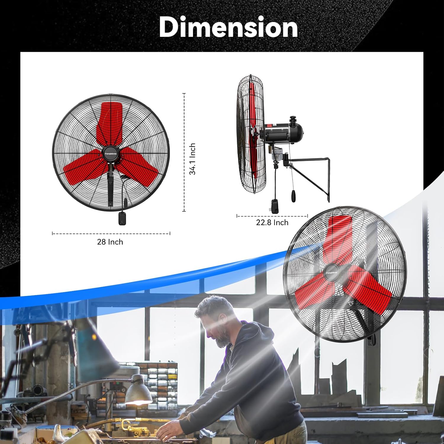 - ๐๐จ๐ฐ-๐๐จ๐ข๐ฌ๐ ๐๐๐ฌ๐ข๐ ๐ง - The heavy-duty wall fan operates at a high speed of 9500 CFM with a noise level of only 65dB, which is lower than the industry standard, creating a quieter gathering or working environment