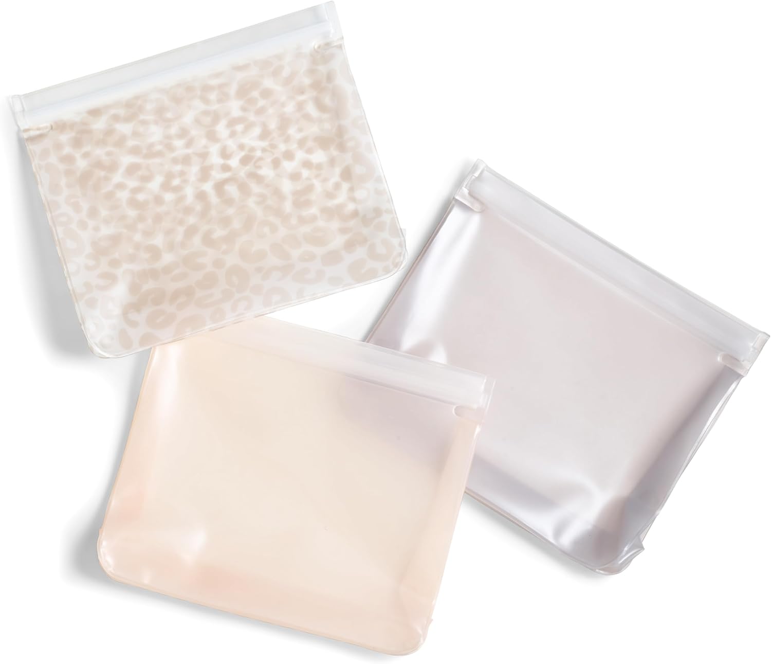 Fit & Fresh Reusable PEVA Storage Bags 3 Pack, Reusable Food Storage Bags, LeakProof, Durable, Freezer Safe, Hand Wash, Easy to Clean, Eco-Friendly, Ivory Feline Fine