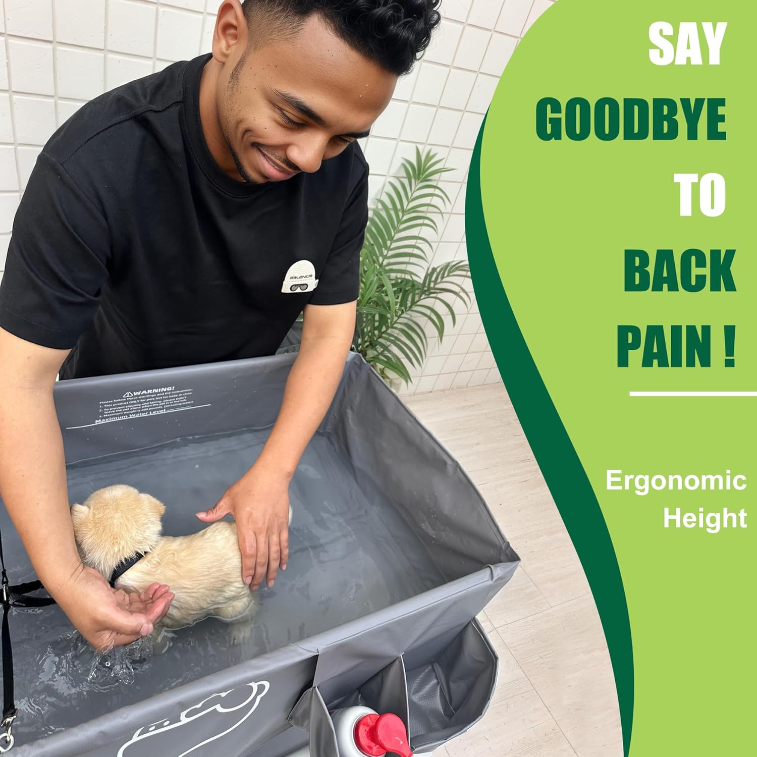- 4. Foldable & Space-Saving Design: This collapsible frame easily folds for travel or compact storage, making it ideal for small spaces. Whether for indoor or outdoor use, it's a perfect puppy wash tub for home shower.