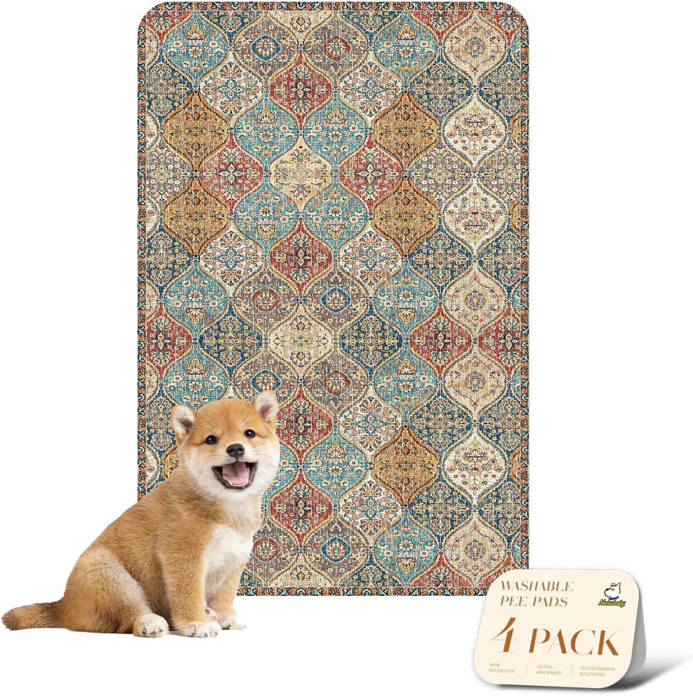 nunubaby 4PACK Washable Pee Pads for Dogs, Stylish, Non-Slip and Leak-Proof Pee Pads. Reusable Potty Pads for Dogs for Crates and Floors.(Cream/Multi, 24" x36")