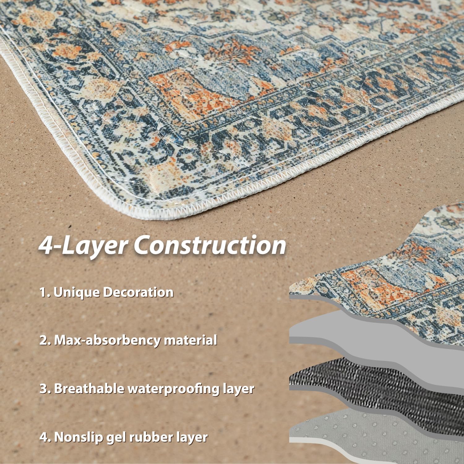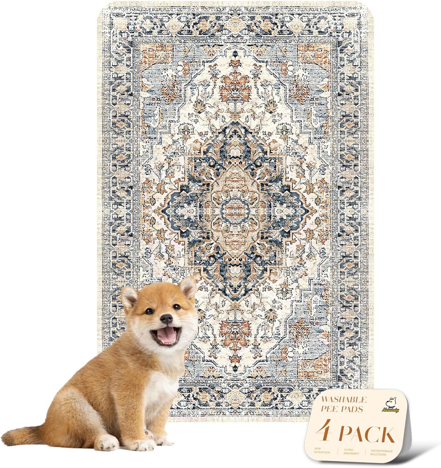 nunubaby 4PACK Washable Pee Pads for Dogs, Stylish, Non-Slip and Leak-Proof Pee Pads. Reusable Potty Pads for Dogs for Crates and Floors.(Beige/Multi, 24" x36")