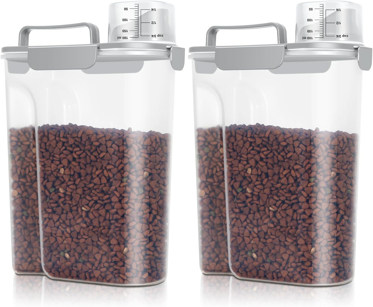 - Airtight Dog Food Container: With the snap-lock latches and silicone gaskets, the dog food dispenser can shut tightly to seal in freshness. You dog or cat won't open the container and make a mess any more