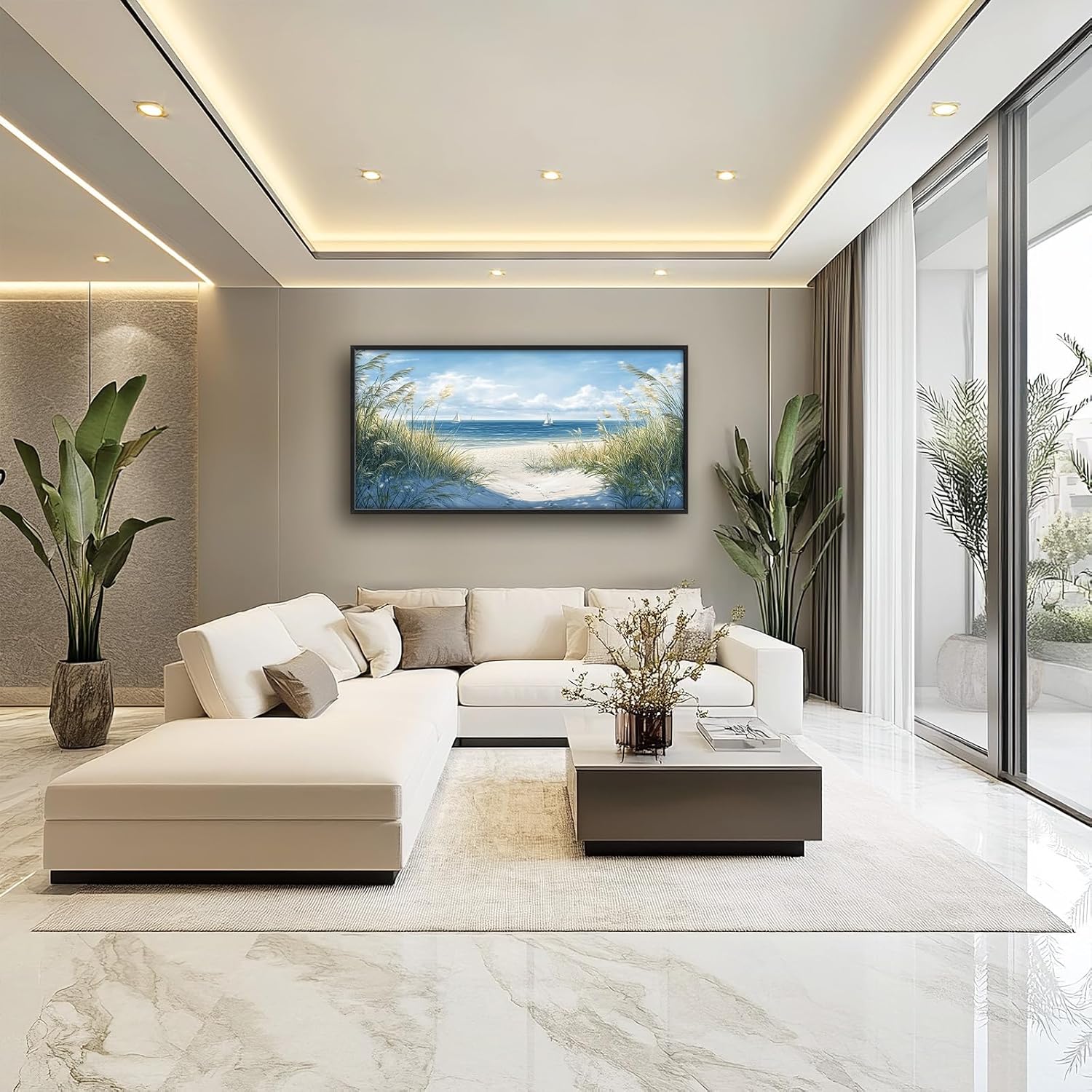 Framed Large Beach Wall Art for Living Room, Oversized Coastal Nautical Wall Decor Sailboat Canvas Seaside Pictures Modern Artwork Home Decoration for Living Room Bedroom Office 60"x30"