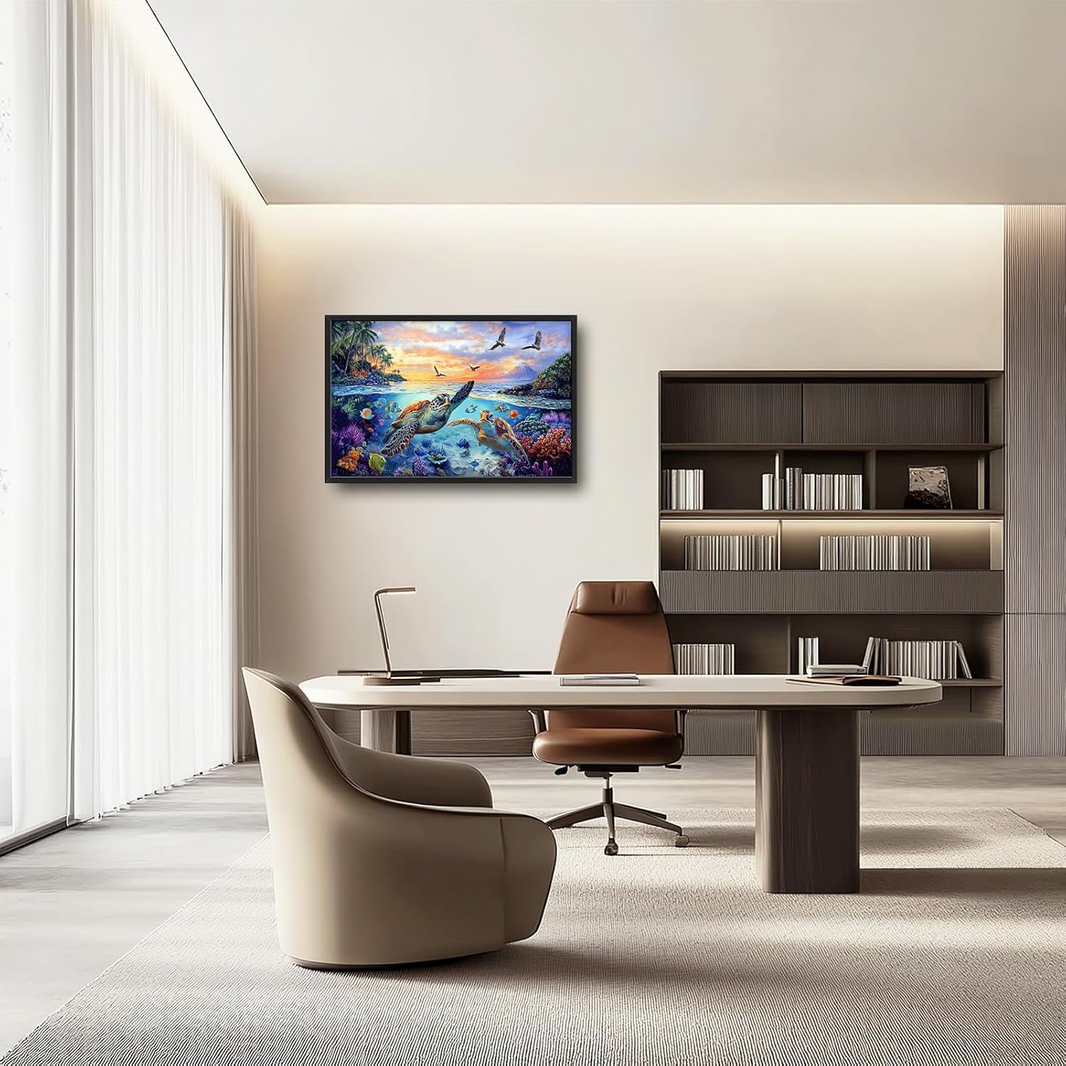 Framed Large Sea Turtle Wall Art for Living Room, Oversized Ocean Turtle Wall Decor Seascape Underwater Marine Life Canvas Painting Home Decoration for Living Room Bedroom Office 36"x24"