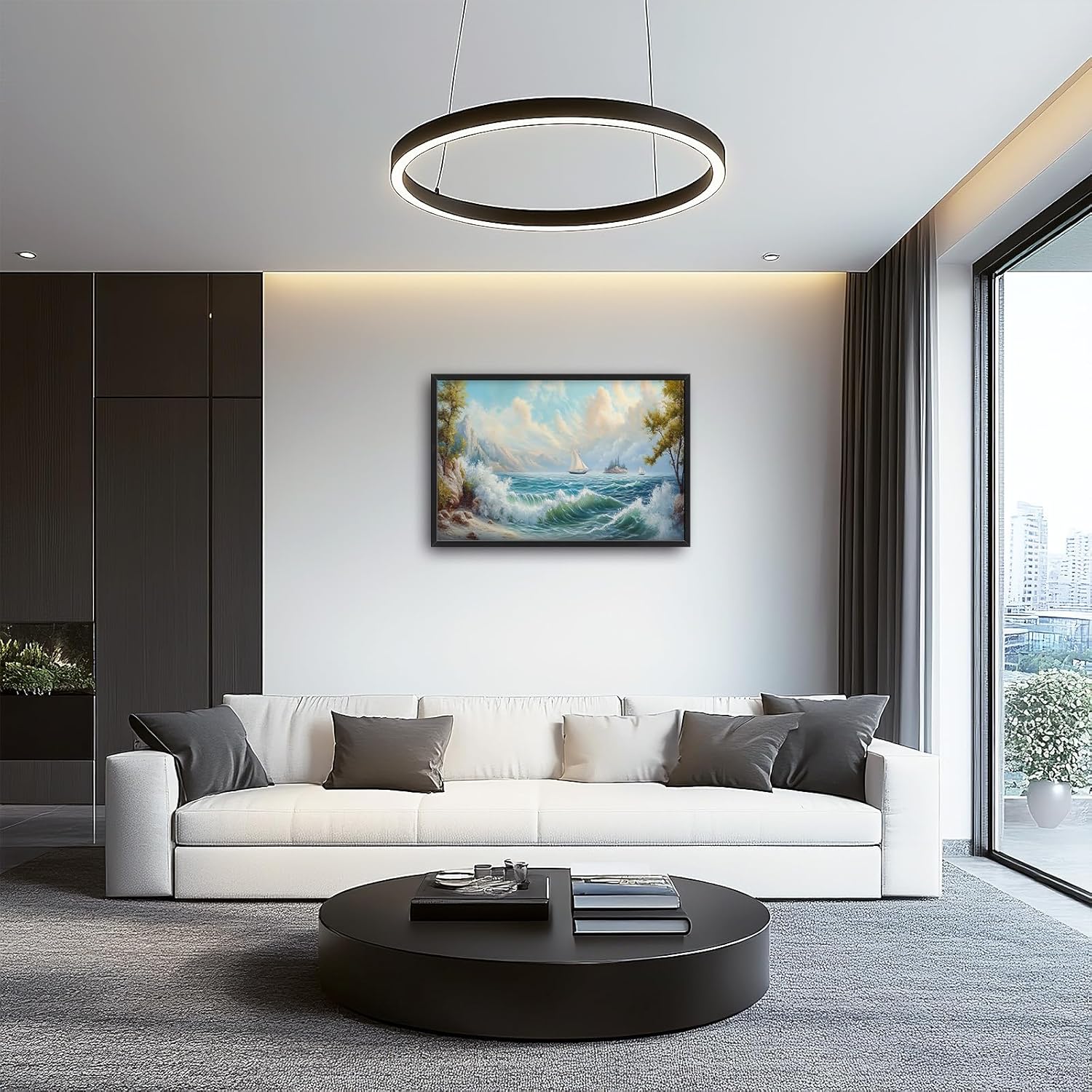 Framed Large Sailboat Wall Art for Living Room, Oversized Sea Coastal Wall Decor Beach Nautical Canvas Painting Seascape Pictures Home Decoration for Living Room Bedroom Office 36"x24"