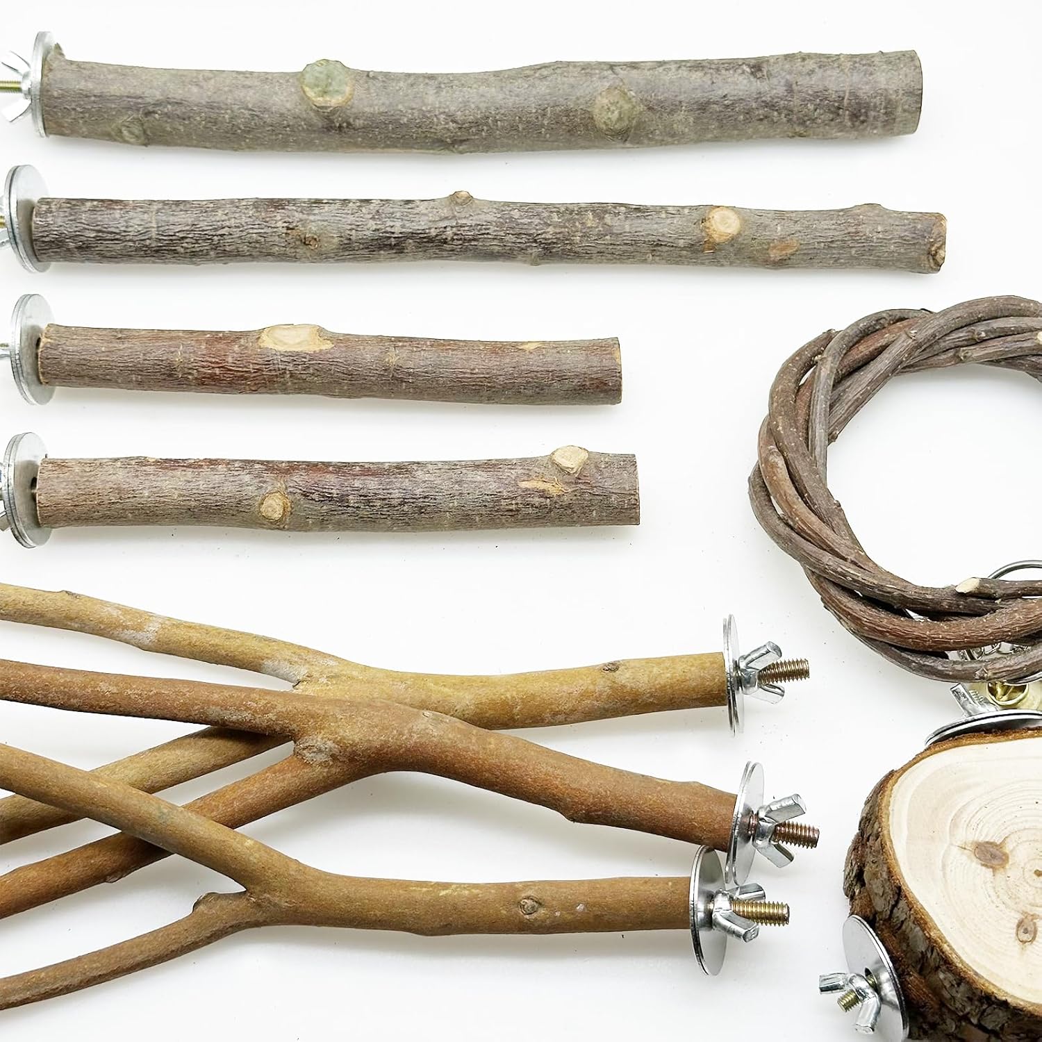 Allazone 10 PCS Natural Parrot Perch Bird Cage Accessories, Bird Platforms, Wood Stands, Grinding Fork Parakeet Platform for Small Lovebirds Budgies Cockatiels