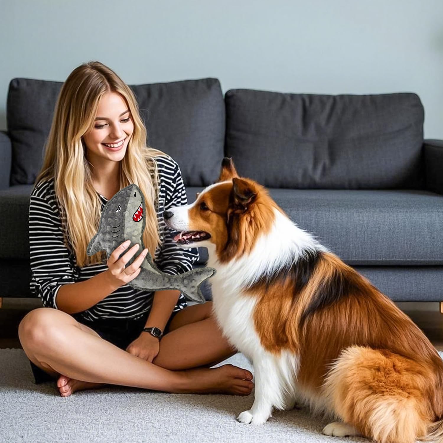 - Cute Gray Shark no stuffed dog toys:No-Stuffing, Durable Chew Toys for Puppies & Adult Dogs This Seahorse dog toy set features high-quality material with no stuffing inside, preventing messy spills when chewed. The non-toxic, pet-safe design ensures worry-free chewing. these toys suit small, medium, and large breeds, providing long-lasting fun for all dogs.