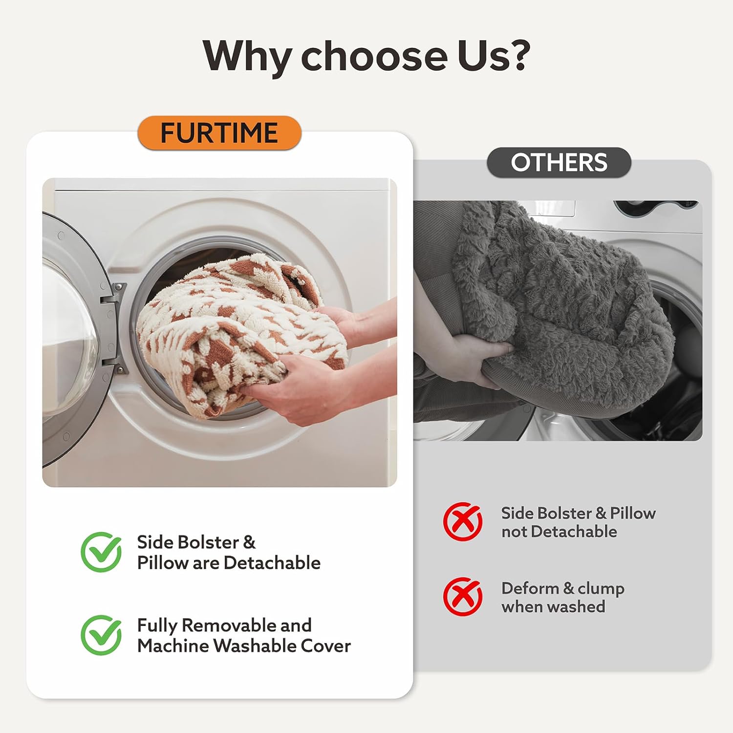 - REPEATEDLY WASHABLE, NO DEFORMATION OR CLUMPING: The dog beds large sized dog has a fully detachable cover, and the side cushions and pillows are removable too. Large dog bed won't become deformed or clump even after repeated washes. Remove the foam insert, and the cover can be washed in a machine. Please note that the foam insert is not washable.