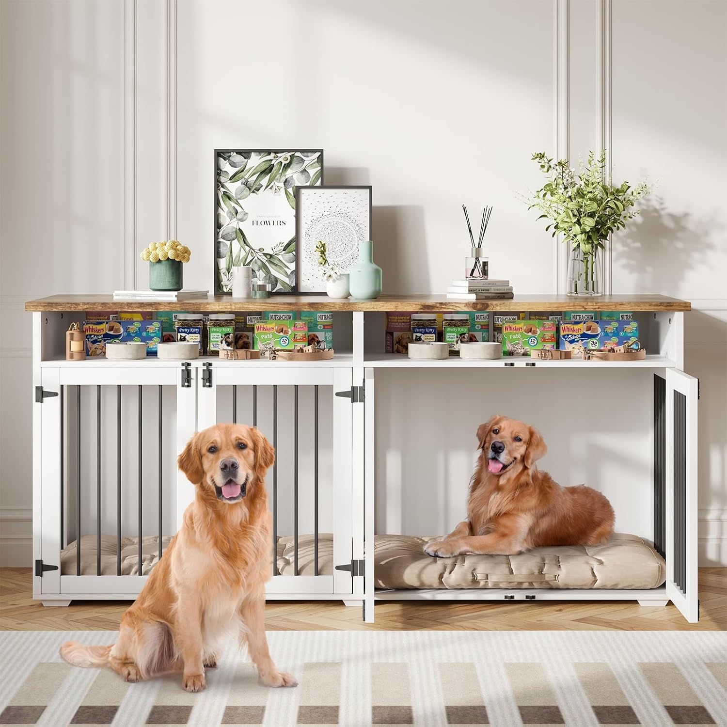 - DOG KENNEL FURNITURE FOR LARGE/MEDIUM DOGS: Suitable for large/medium dogs, this 72-inch dog kennel indoor provides plenty of living space for your dogs and incorporates modern design elements to complement your home's interior design
