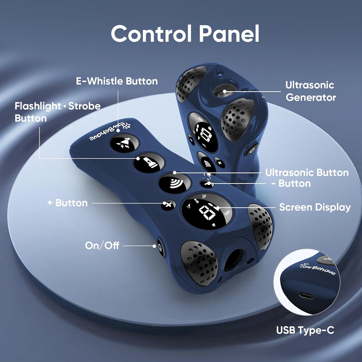 Ultrasonic Dog Bark Deterrent Device –10-Level Adjustable Anti Barking Trainer with Flashlight, Strobe, E-Clicker(18 Whistle Sounds)–No Shock, Collar-Free Dog Behavior Correction Devices