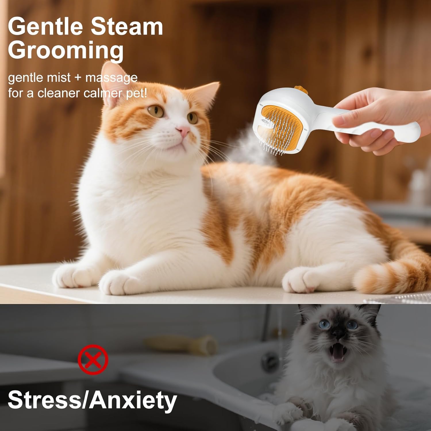 - 【3 in 1 Cat Steam Brush】: Multi-functional pet grooming tool that combines the functions of hair removal, cleaning and massage. While removing hair, clean dirt from hair and skin. Let you don't need to worry about cleaning your beloved pet every day. Note: Our cat brush only converts water into spray and does not heat it